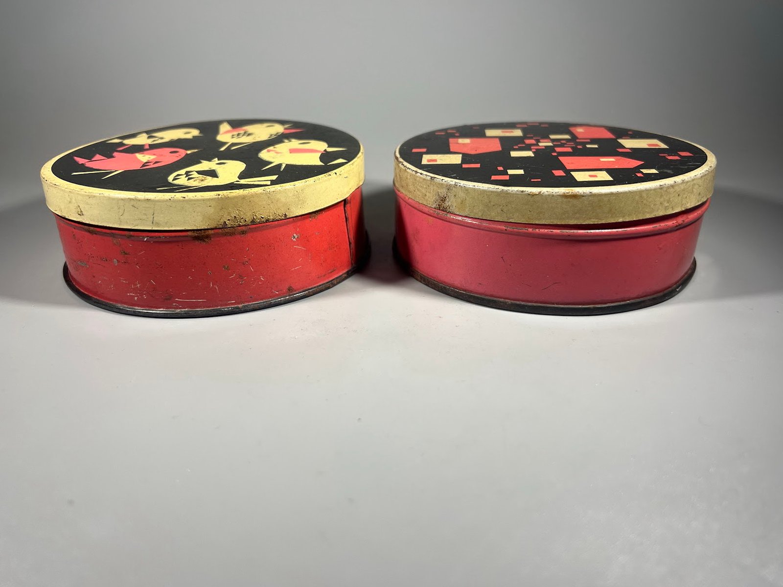 Dėžutė skardinė saldainiams, ledinukams sovietinė, tarybinių laikų. 1960–1980 m. 2 vnt. Skersmuo 11, aukštis 4 cm. Kaina po 13