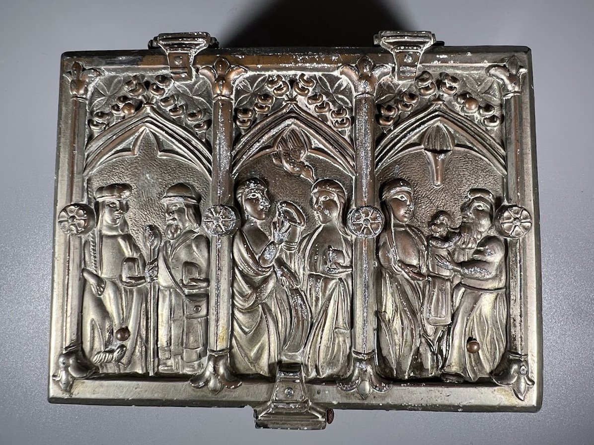 Dėžutė, skrynelė antikvarinė, neogotikinio stiliaus dekoratyvinė, japoniška. Made in Japan. Dydis: 7 x 10 x 13 cm. Svoris 1 kg. Kaina 87