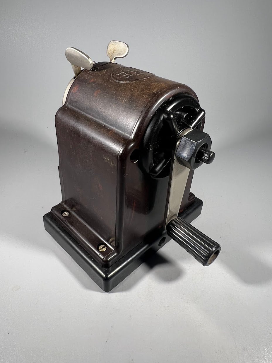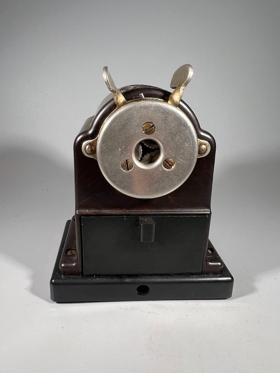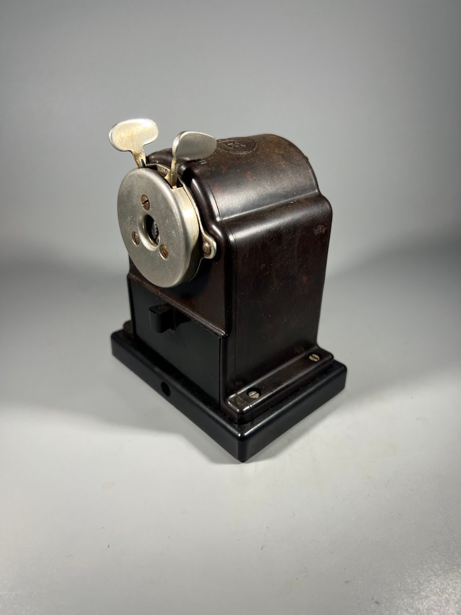 Drožtukas pieštukams FTE 120, bakelitinis, antikvarinis, vokiškas. German Bakelite Pencil Sharpener FTE modell 120. 1930 m. Aukštis 12 cm. Kaina 77