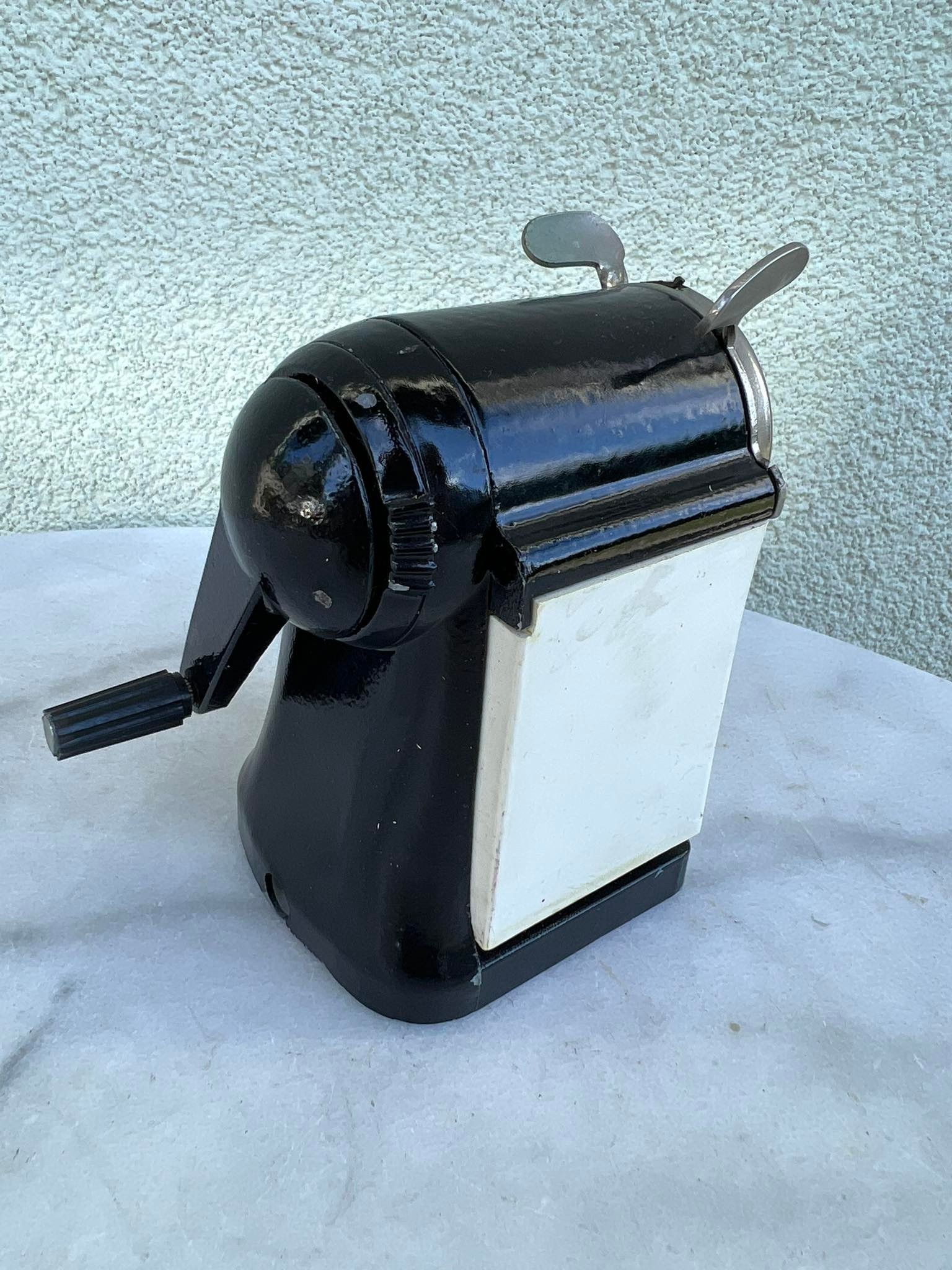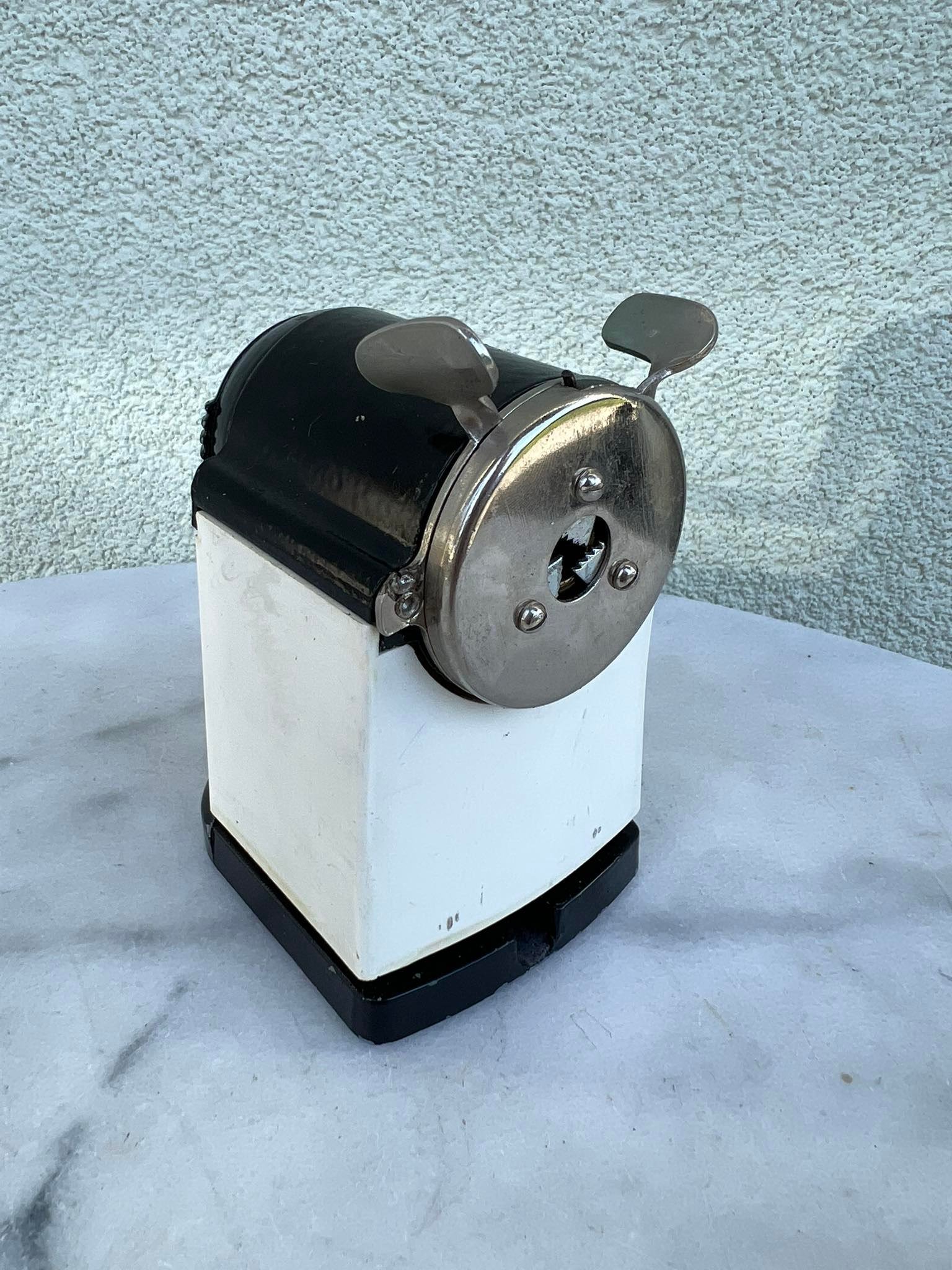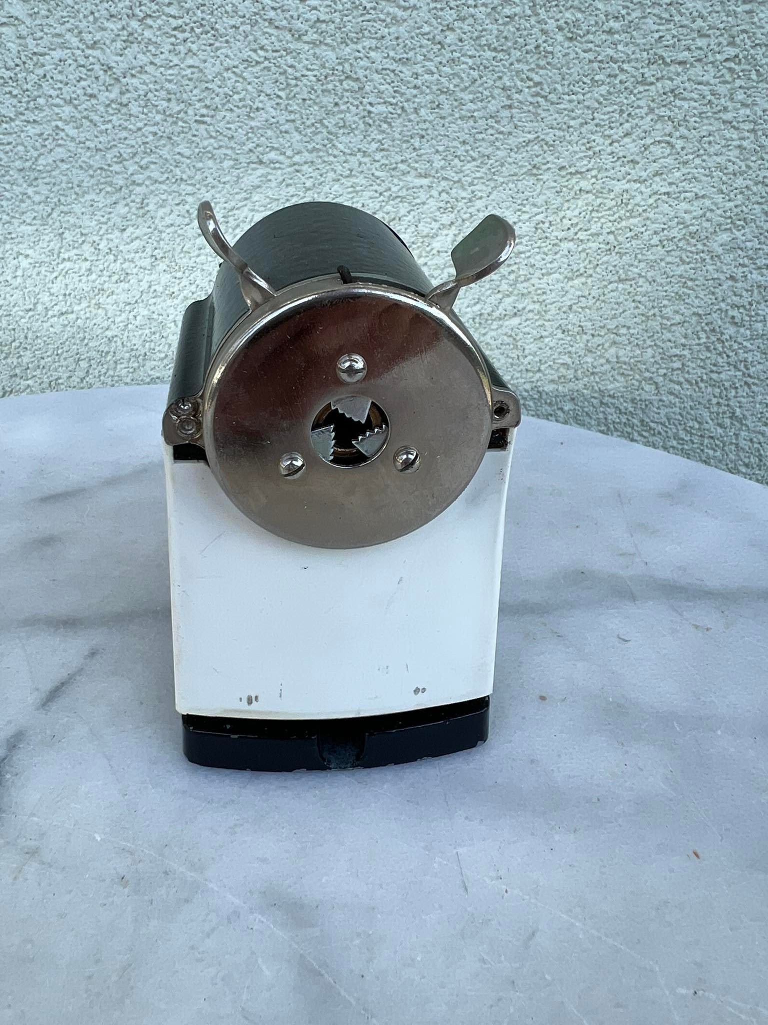 Drožtukas pieštukams ketaus, špižinis. 1960 m. Veikiantis. Aukštis 12, ilgis 11, plotis 7 cm. Kaina 63