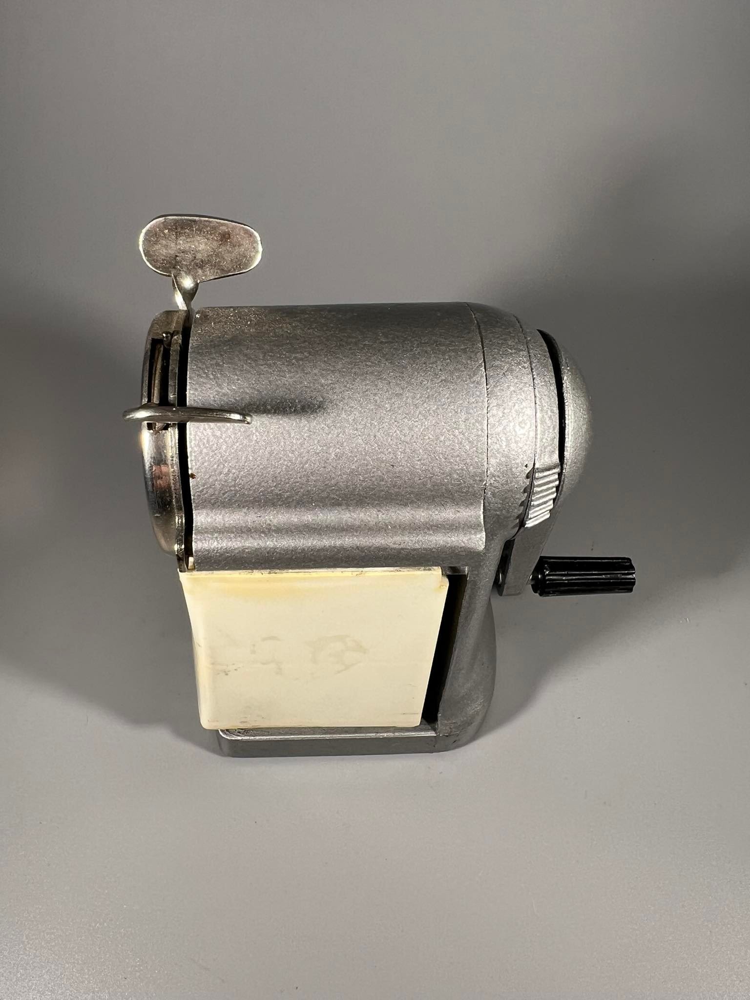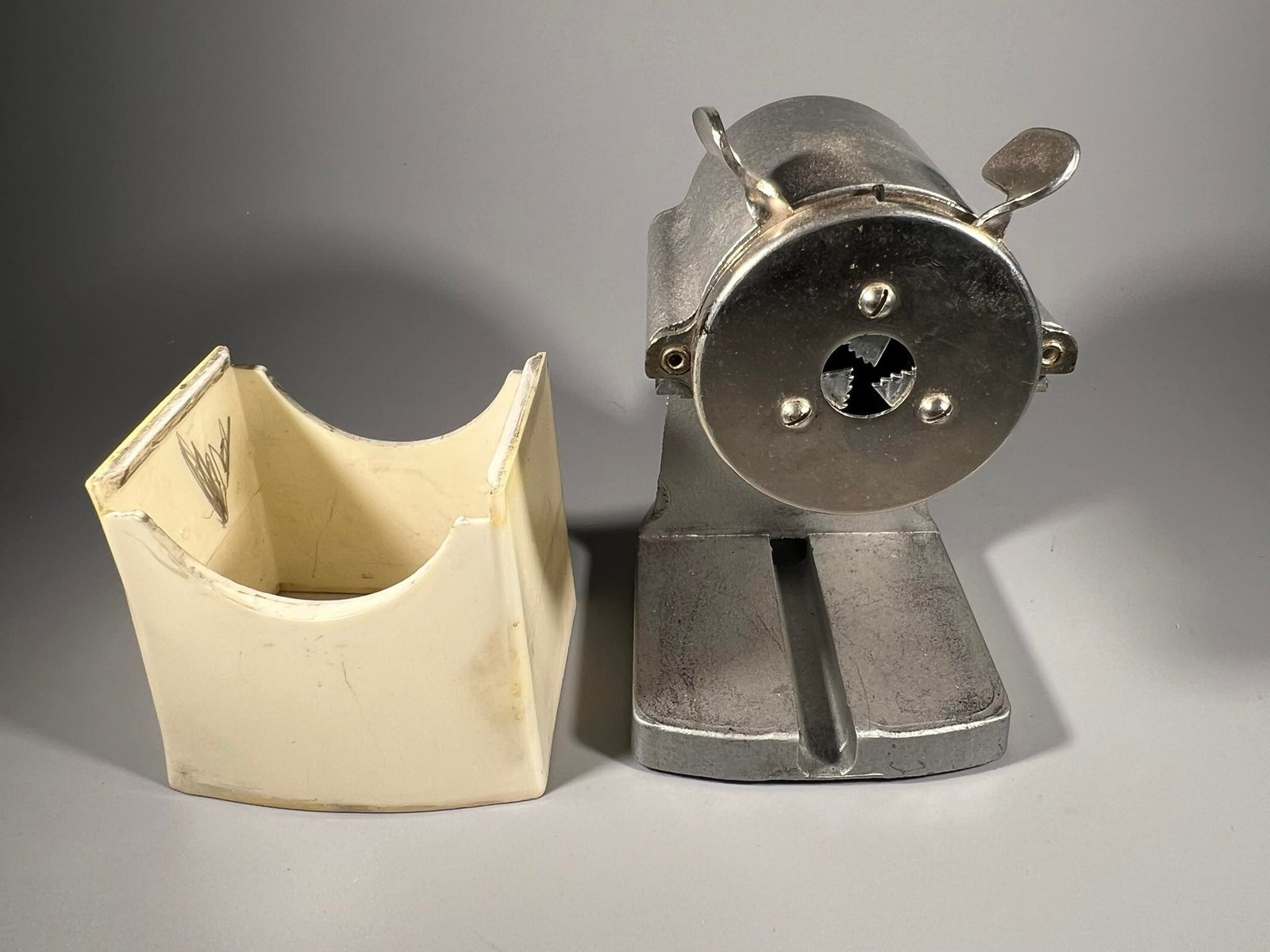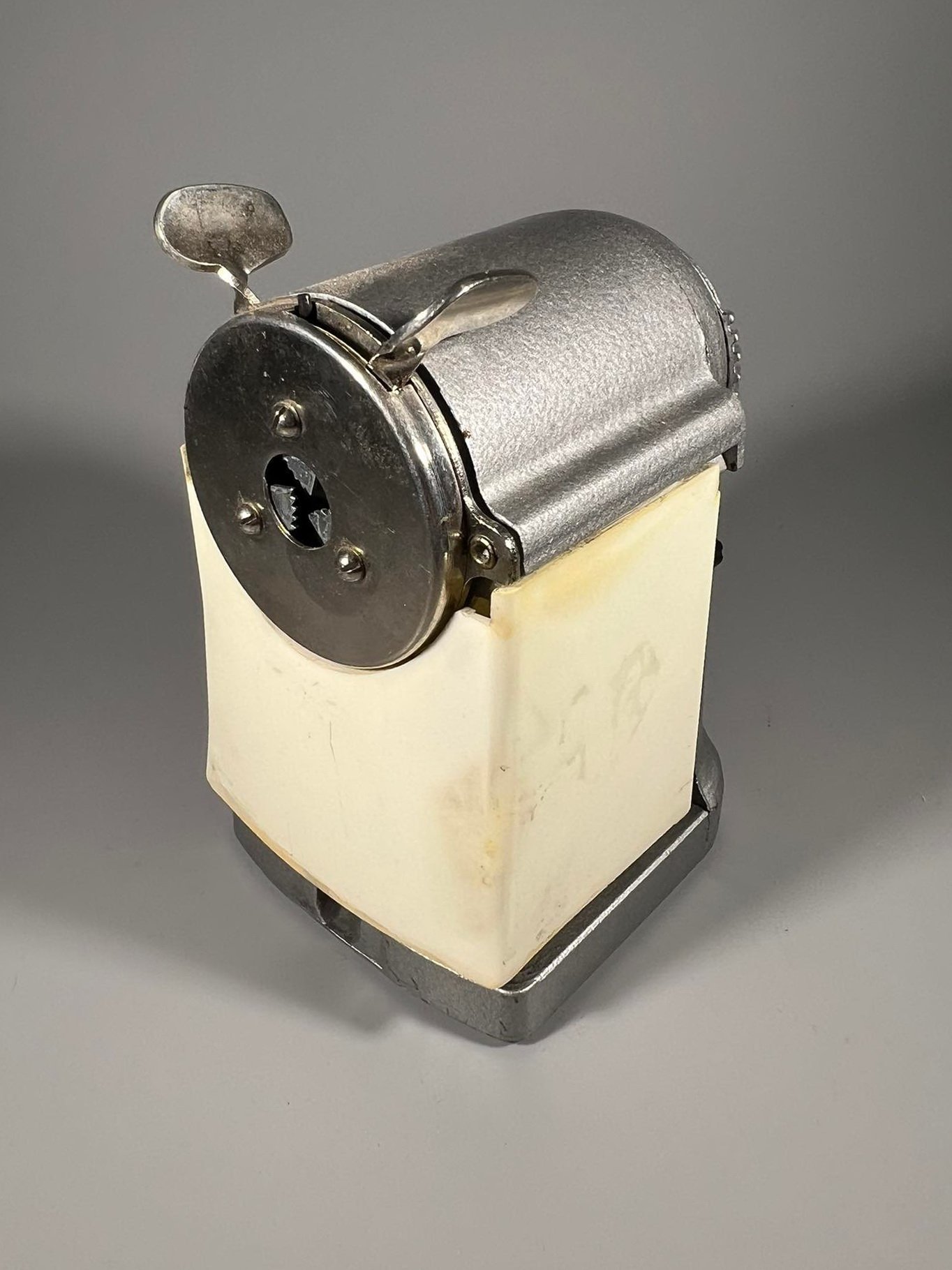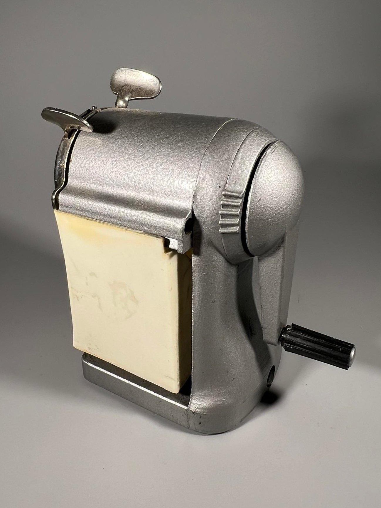 Drožtukas pieštukams mechaninis, ketaus, špižinis sovietinis, tarybinių laikų. Veikiantis. Aukštis 12, ilgis 11, plotis 7 cm. Kaina 43