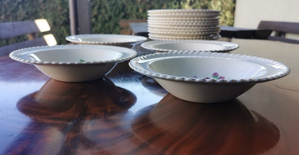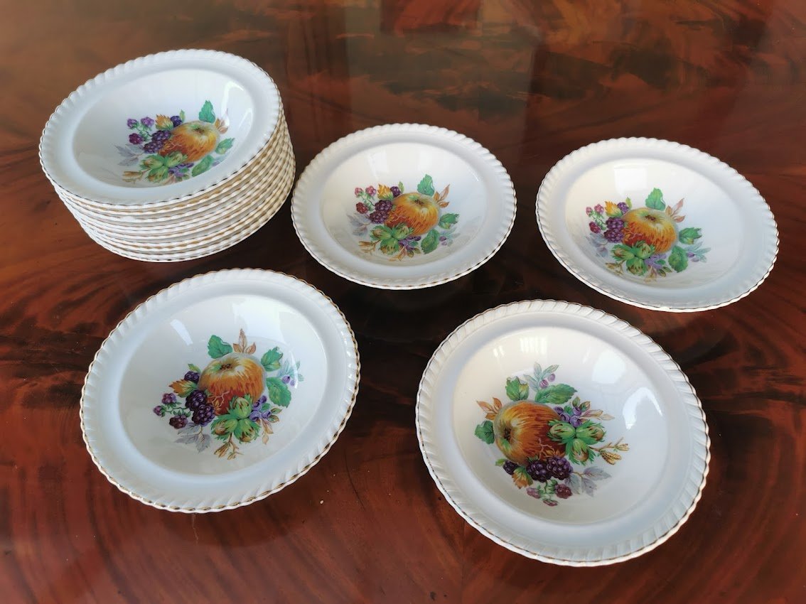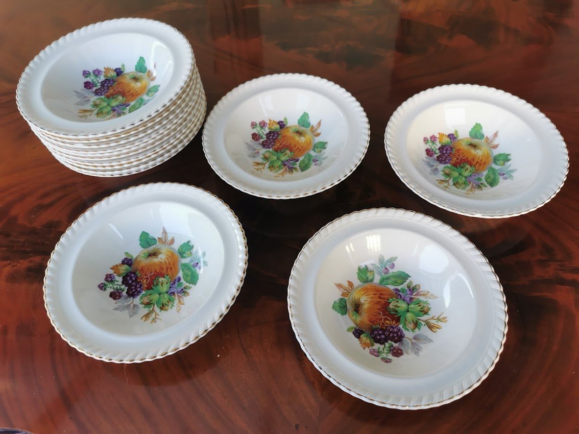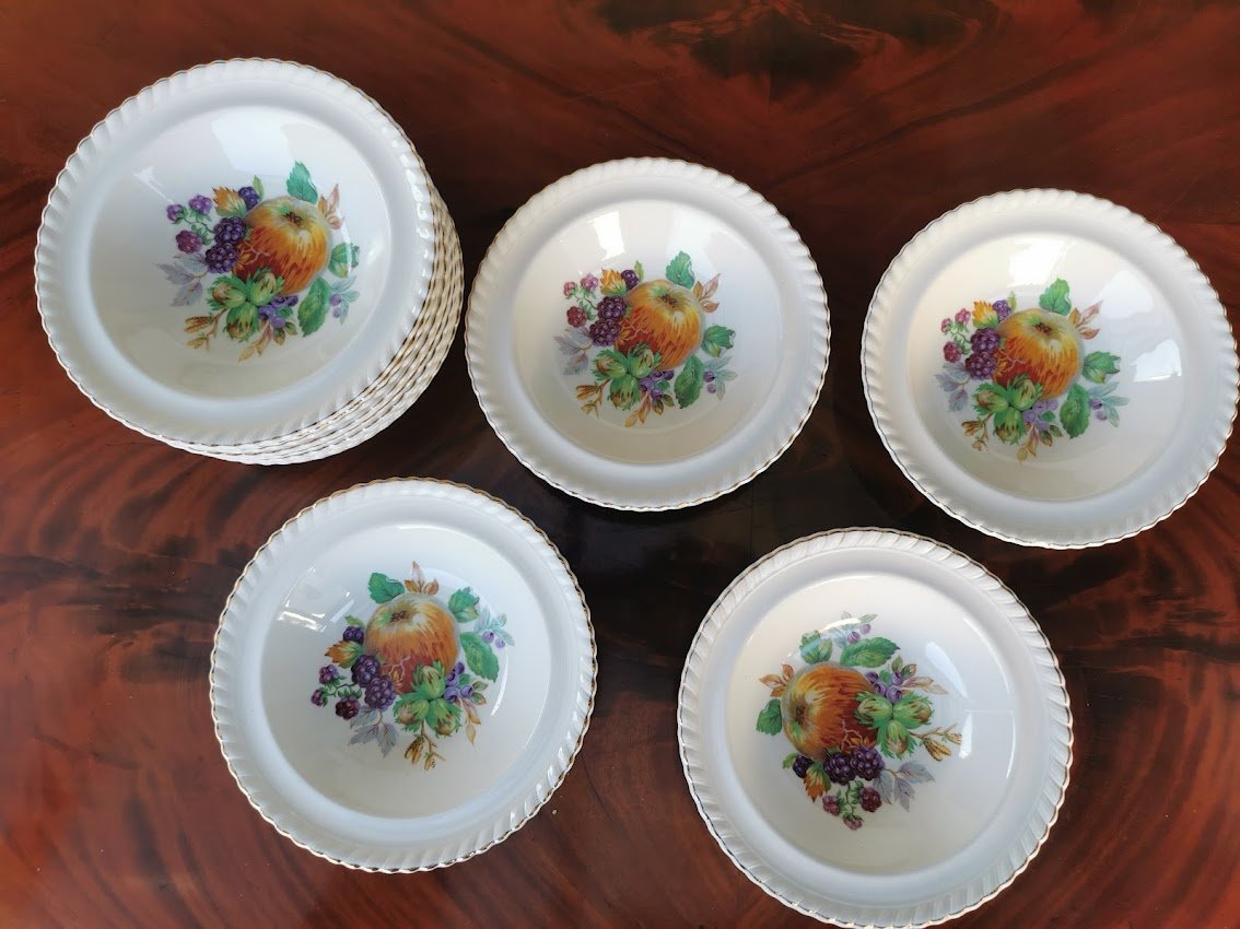 Dubenėliai porcelianiniai antikvariniai. Old English, Johnson Bros. Made in England. LIKO 9 vnt. Skersmuo 17, aukštis 4 cm. Kaina po 8