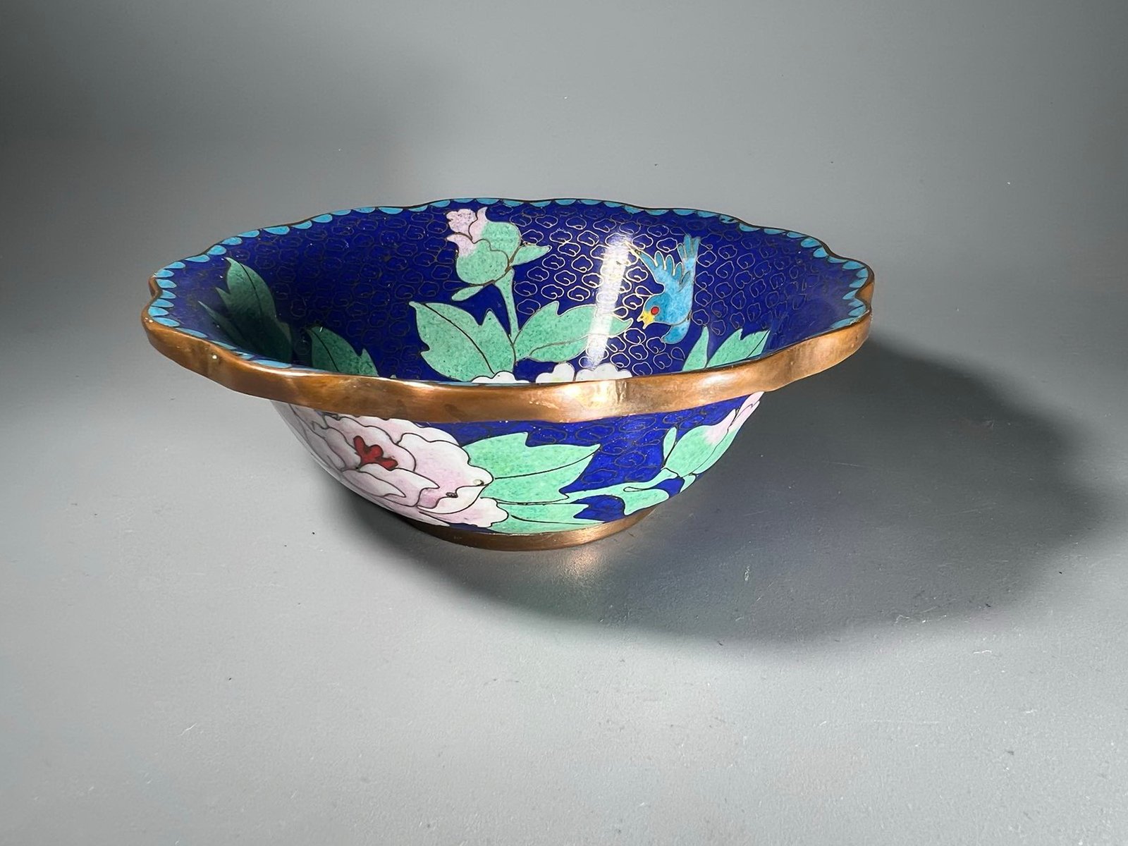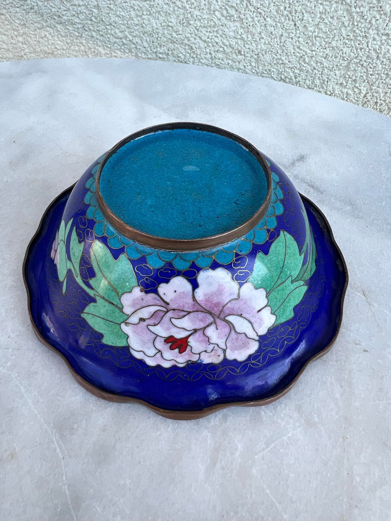 Dubenėlis Cloisonne, antikvarinis. Aukštis 5, skersmuo 13 cm. Kaina 43