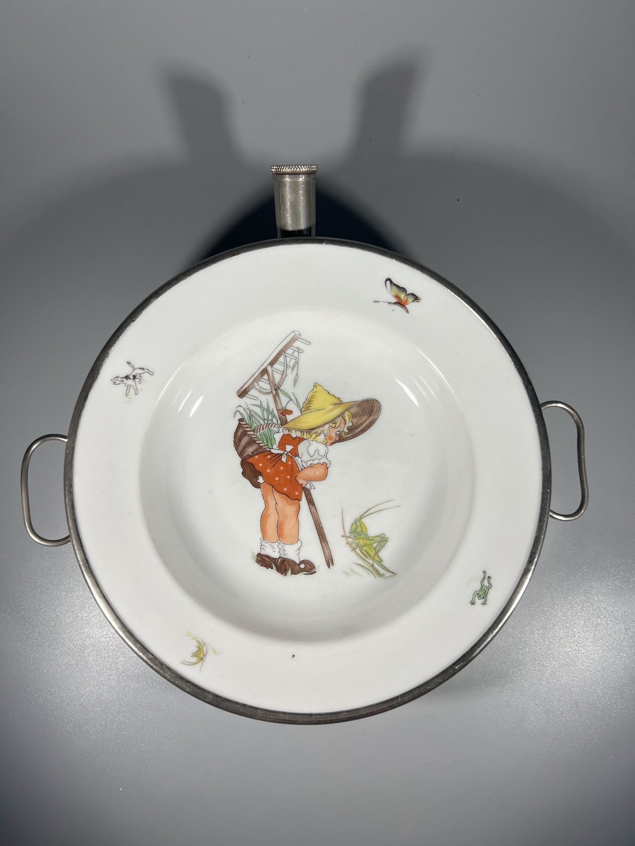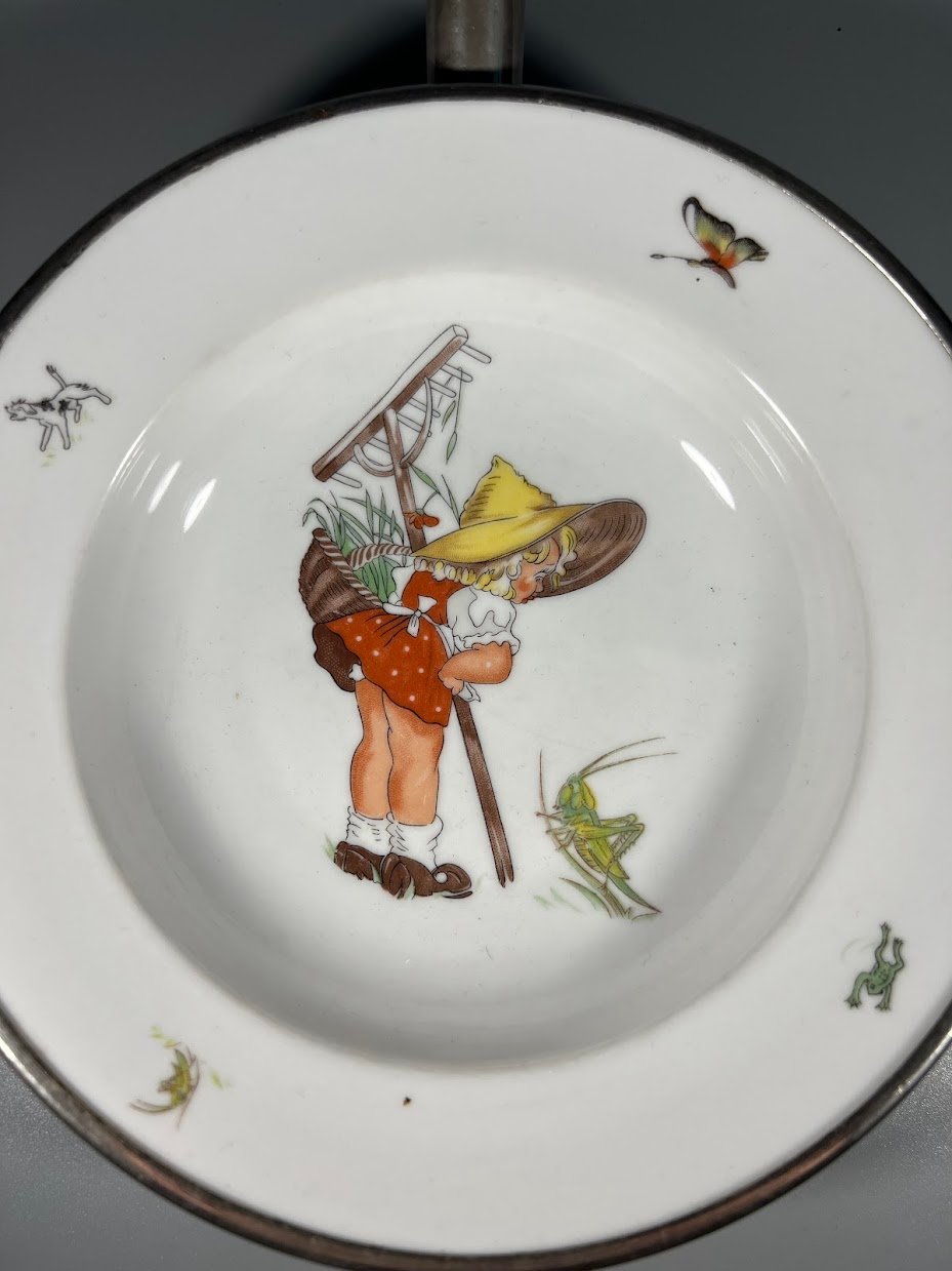 Dubenėlis, lėkštė vaikiškas, šildomas, dvigubu dugnu, antikvarinis. Kaina 83