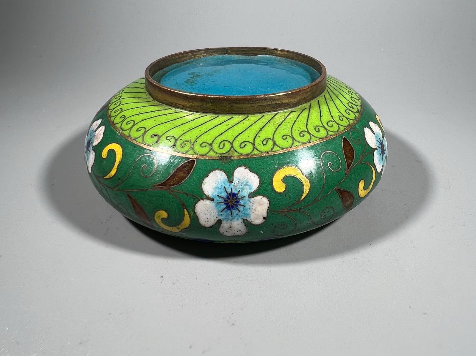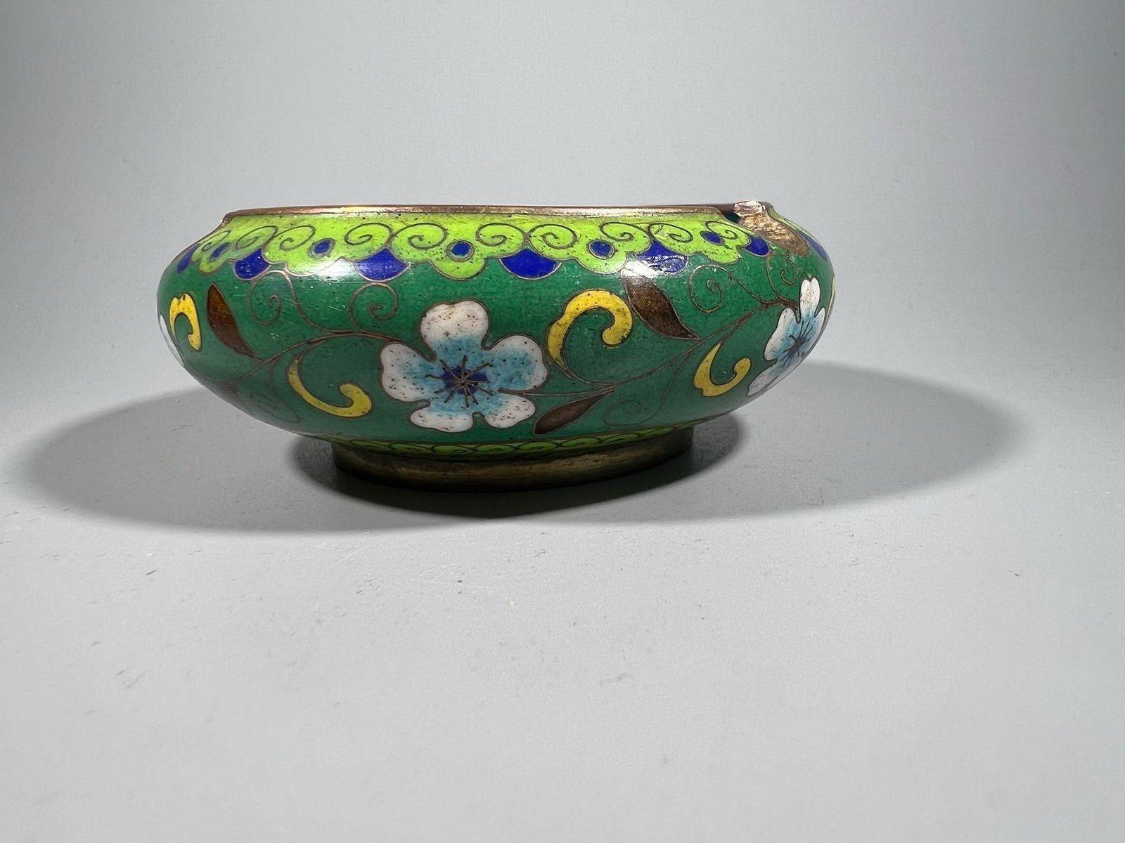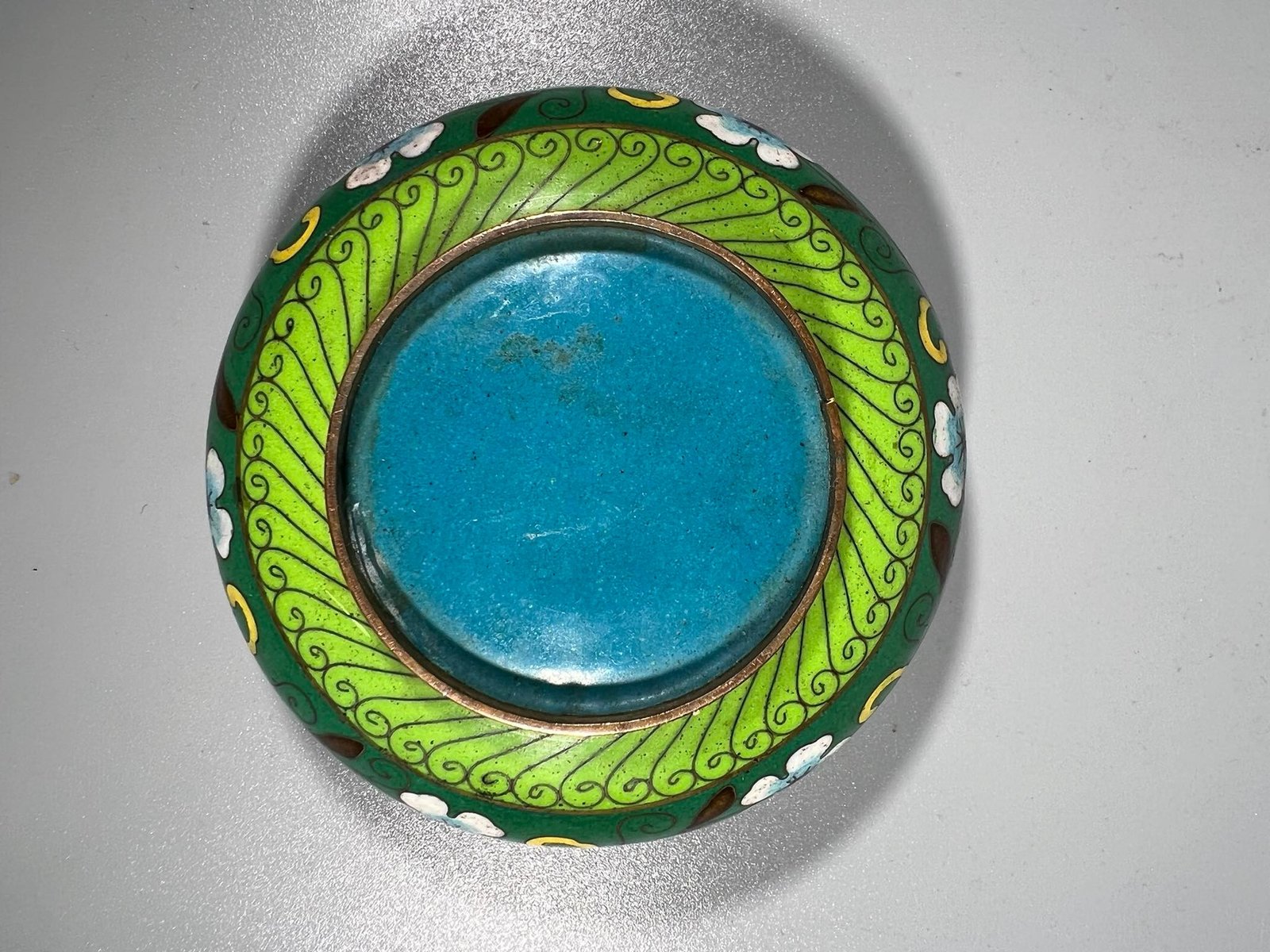Dubenėlis, peleninė Cloisonne, antikvarinis. Aukštis 3,5, skersmuo 9,5 cm. Kaina 32