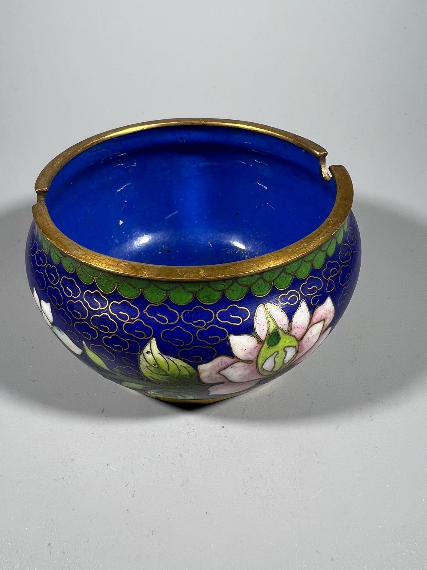 Dubenėlis, smilkalinė, peleninė Cloisonne, antikvarinis. Aukštis 5, skersmuo 9,5 cm. Kaina 33