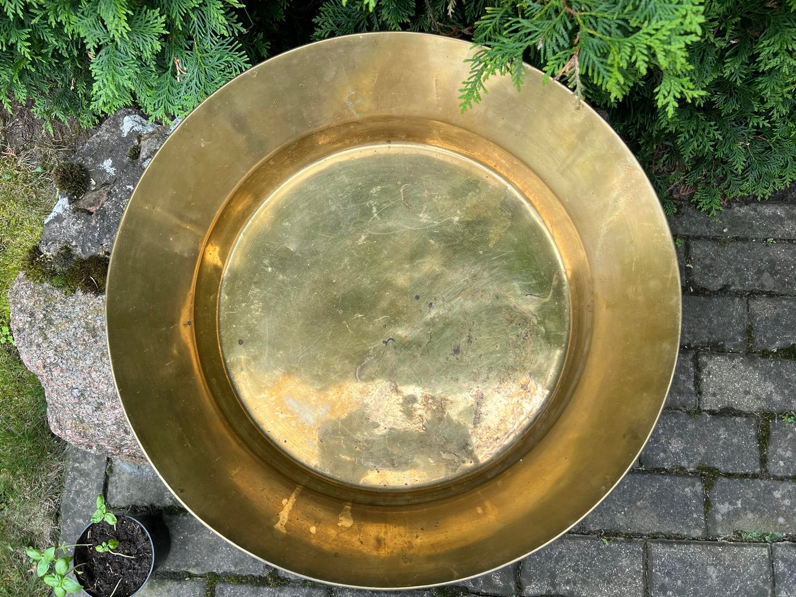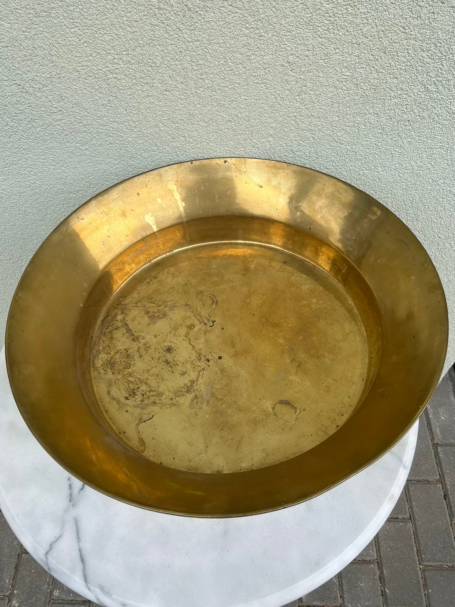 Dubuo žalvarinis, antikvarinis, didelis, tvirtas. Skersmuo 53, aukštis 13, dugno skersmuo 40 cm. Kaina 168