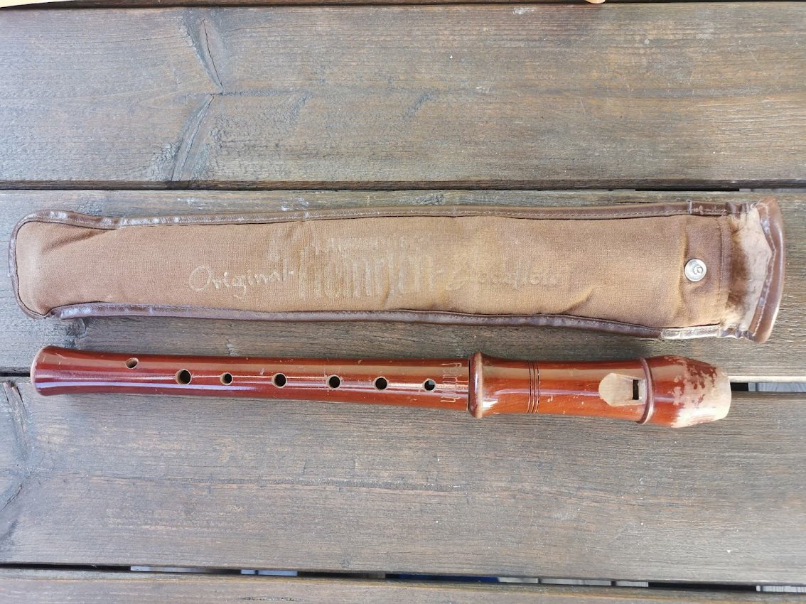 Dūdelė medinė originalioje pakuotėje. Ilgis 32 cm. Kaina 27