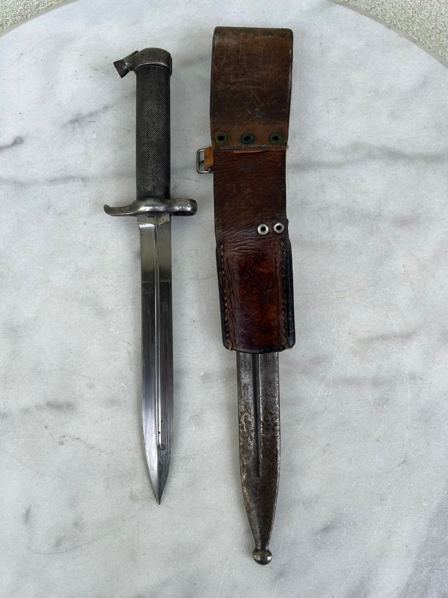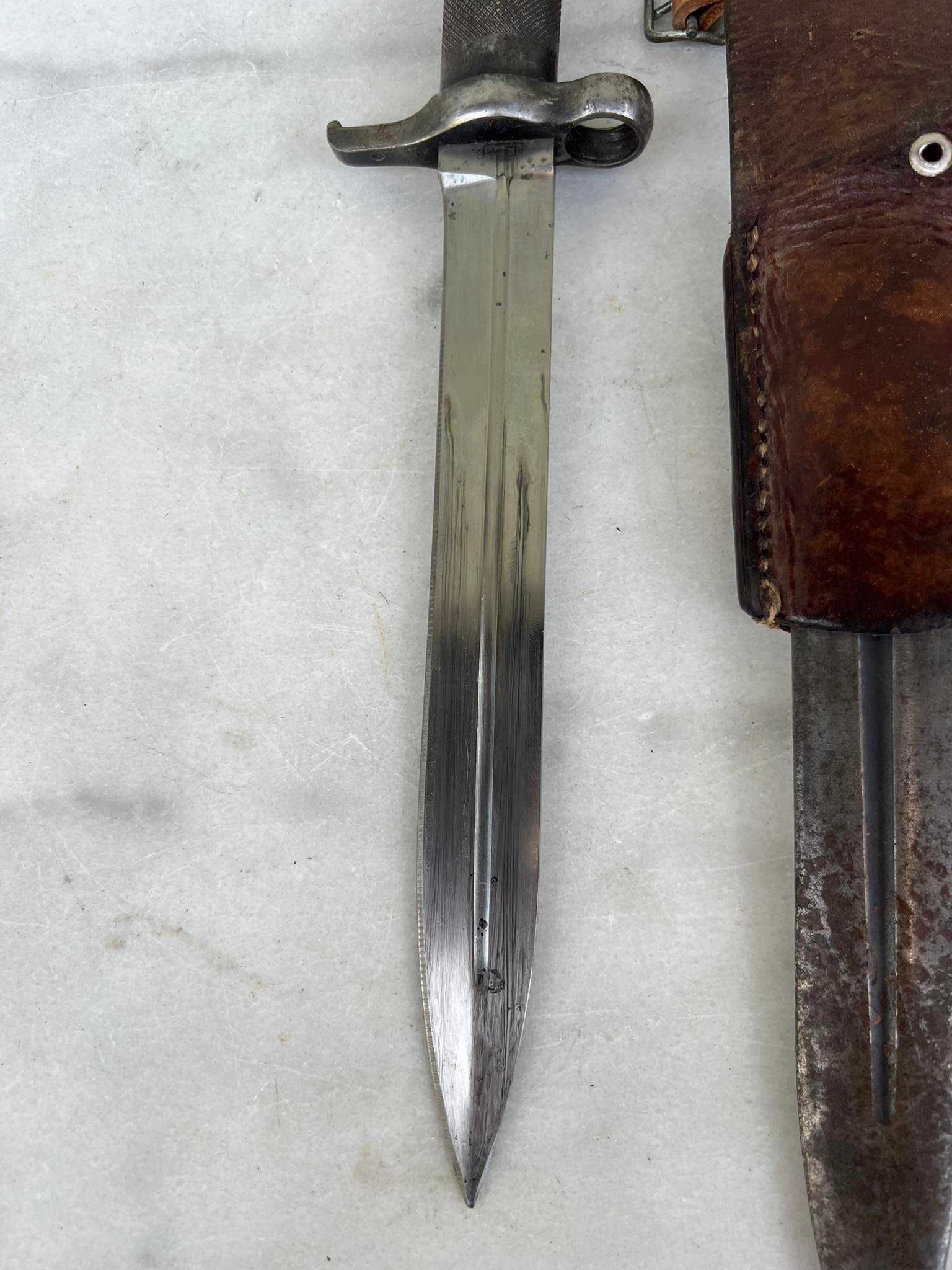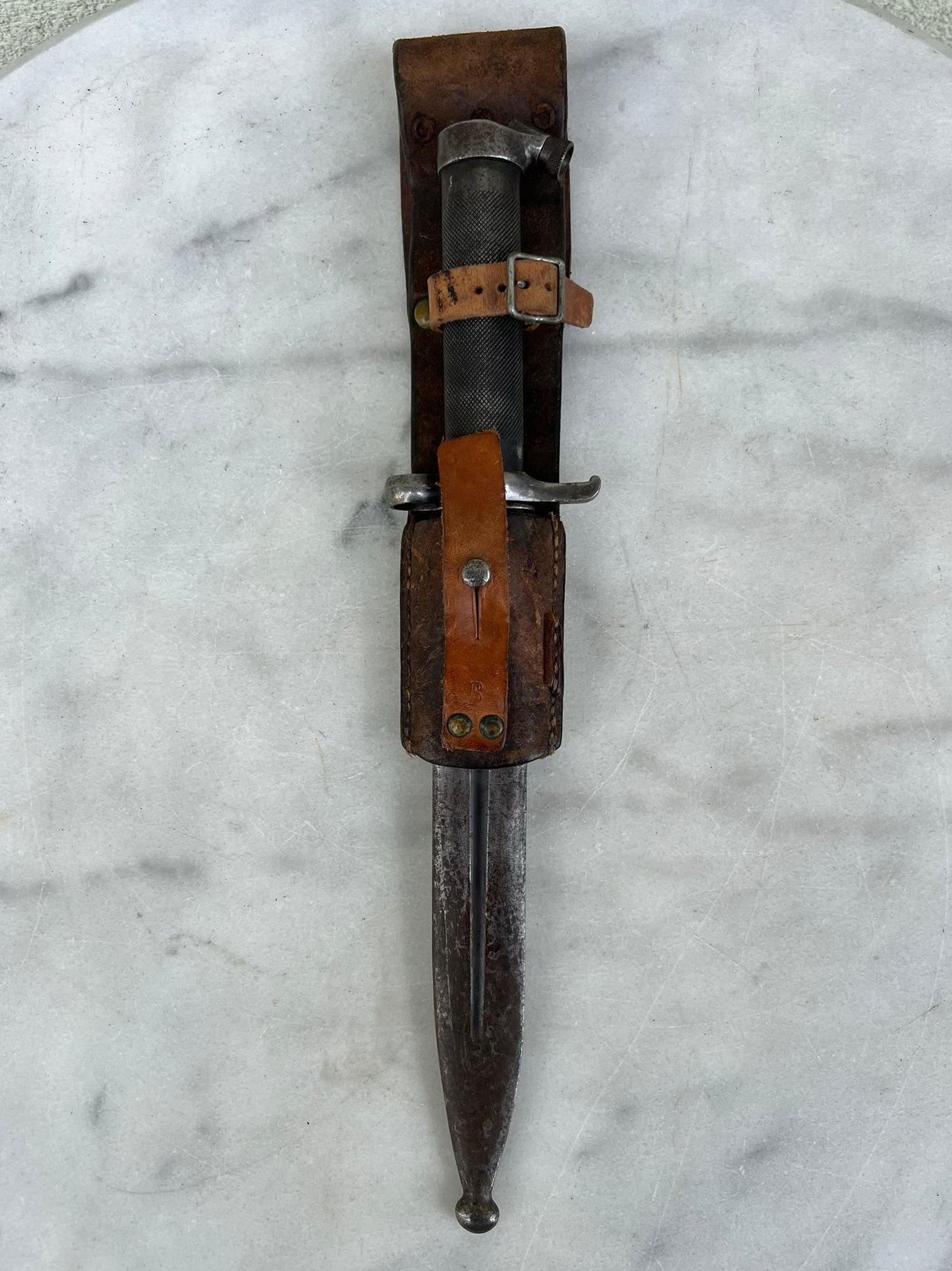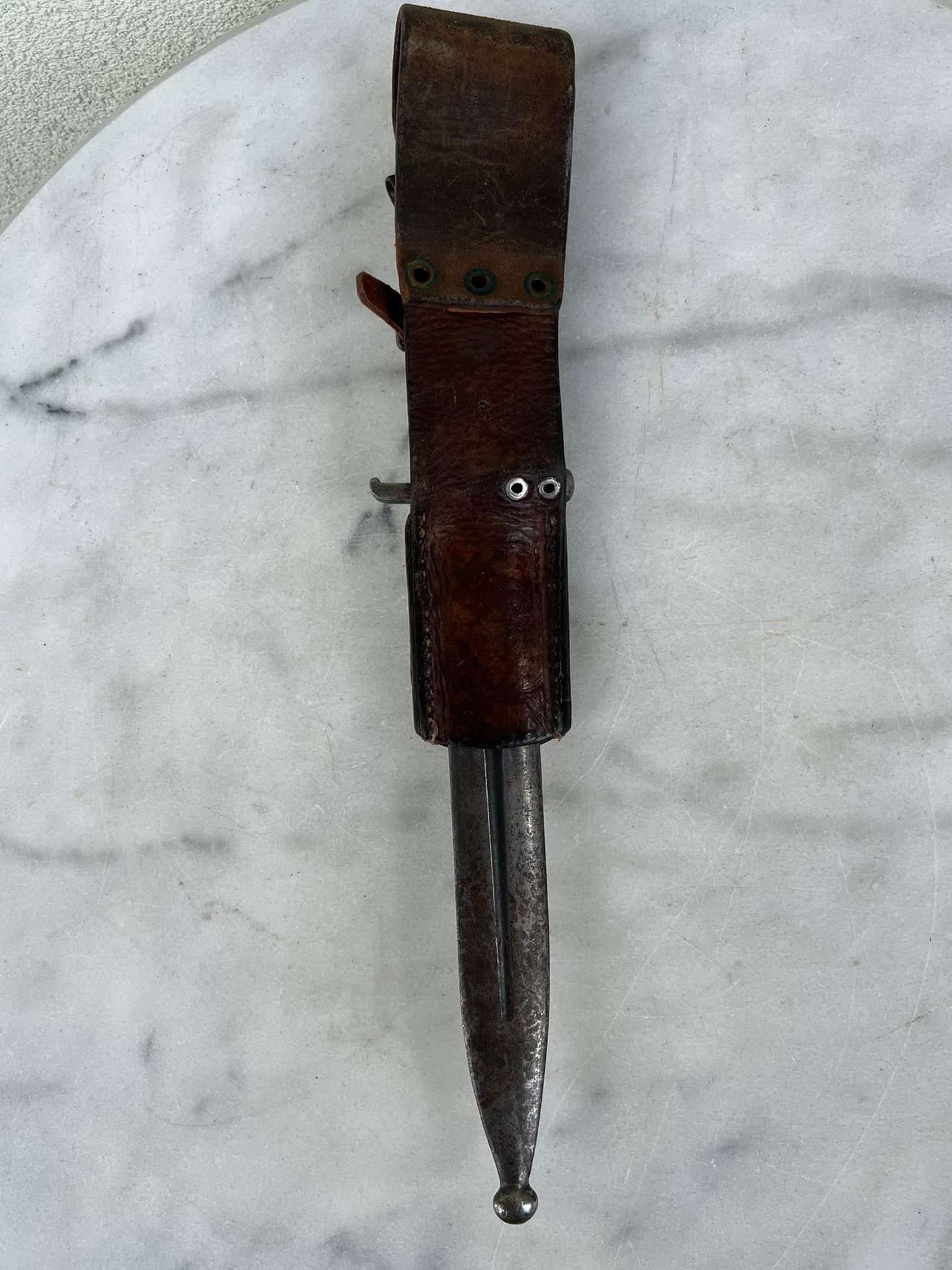 Durtuvas, peilis antikvarinis M96 švediškas Mauser šautuvui, 1896 metų, su odine varle. Kaina 128