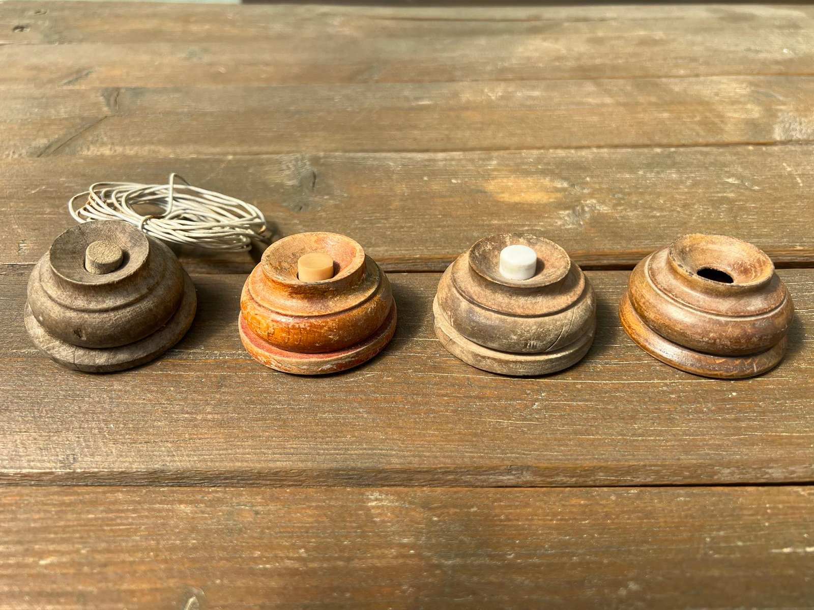 Durų skambutis, medinis, antikvarinis. Netikrinta. 3 vnt. Skersmuo 5, aukštis 3 cm. PARDUOTAS trečias. Kaina po 23