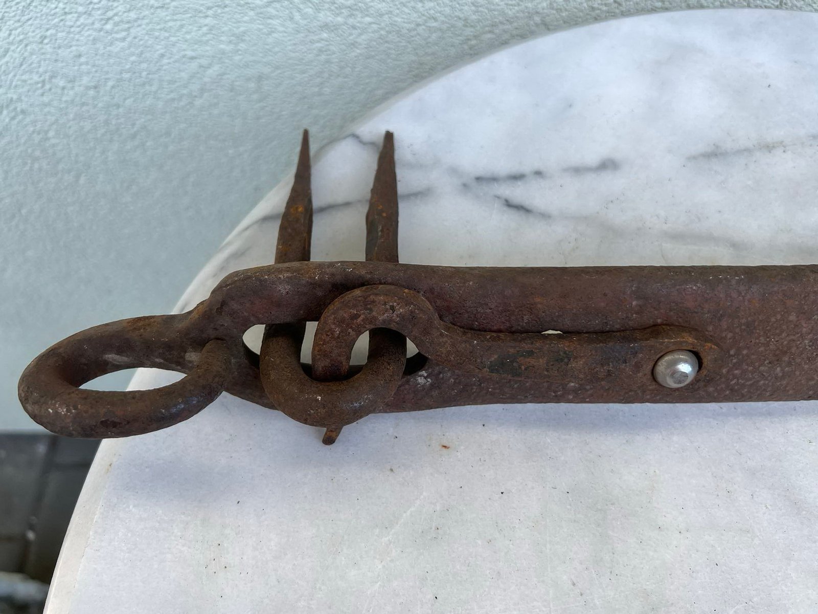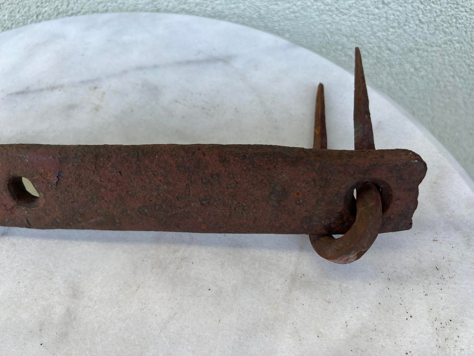 Durų skląstis kaltinis, stambus, liaudiškas, antikvarinis. Pilna komplektacija. Ilgis 52 cm. Kaina 32