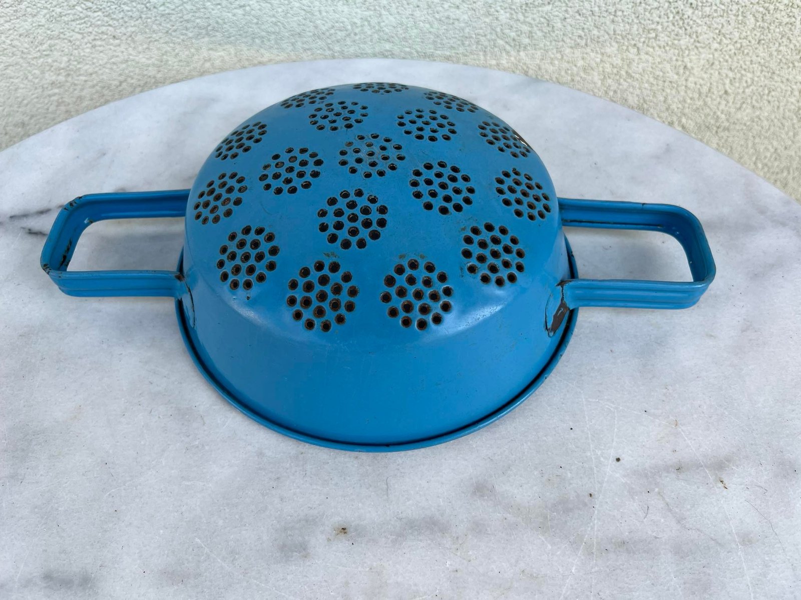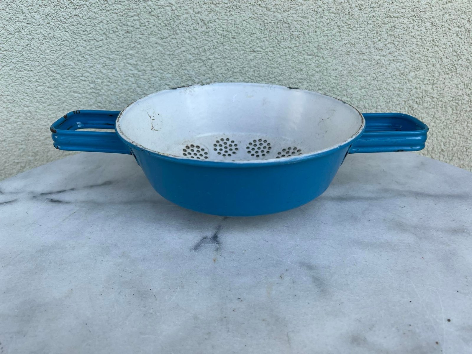 Emaliuotas kiauraindis (duršlikas), rėtis, metalinis, antikvarinis. Kaina 26
