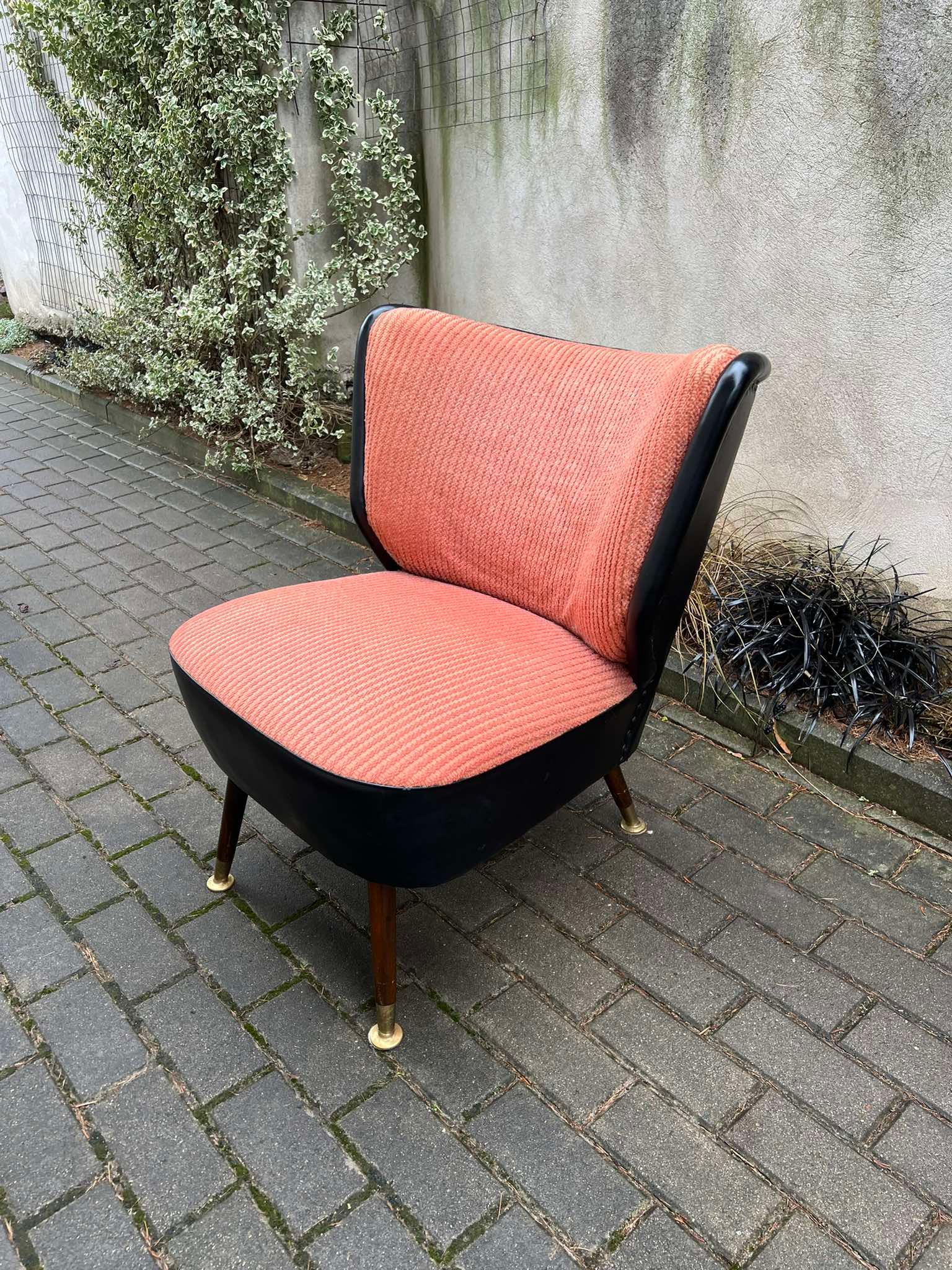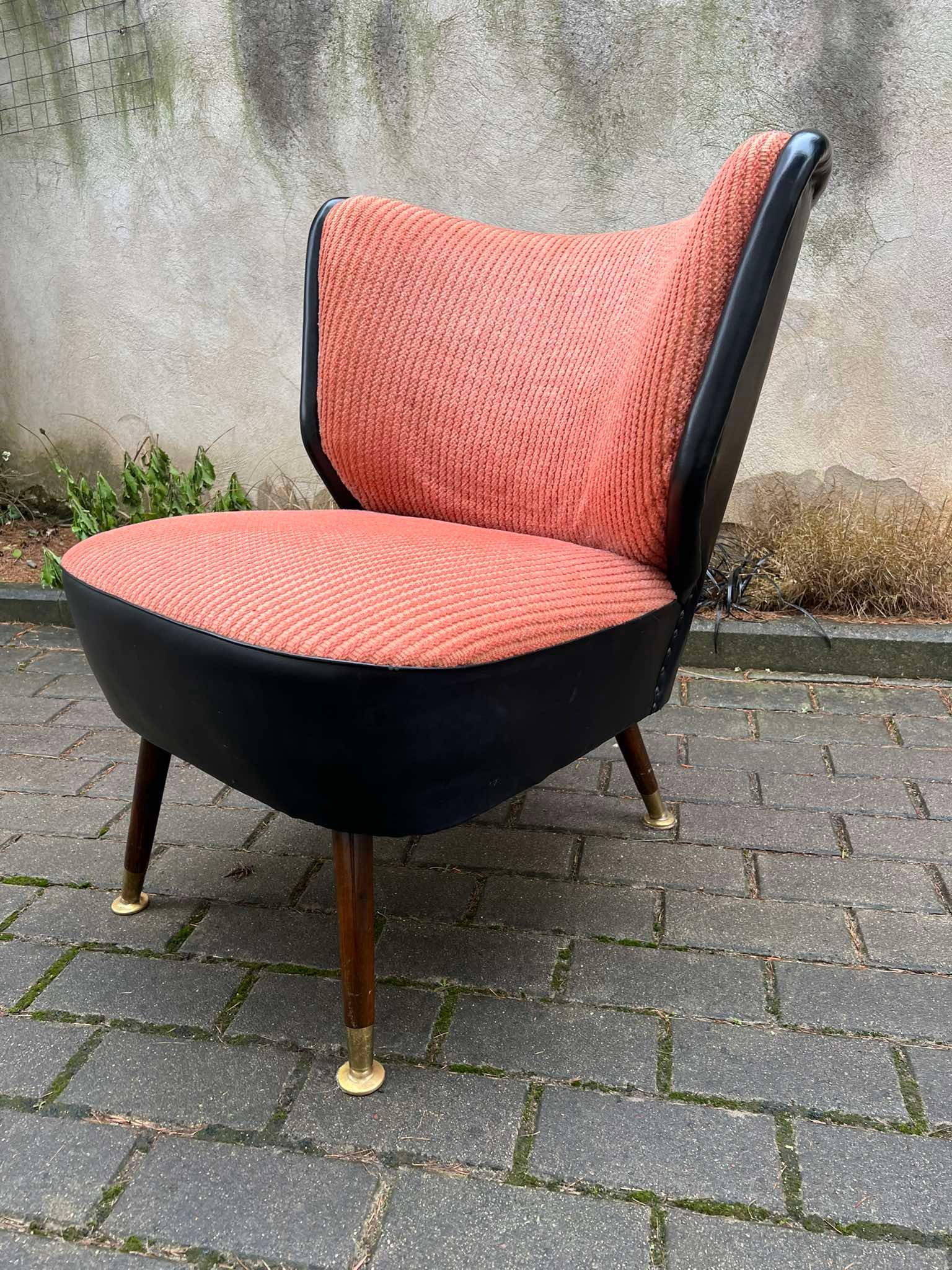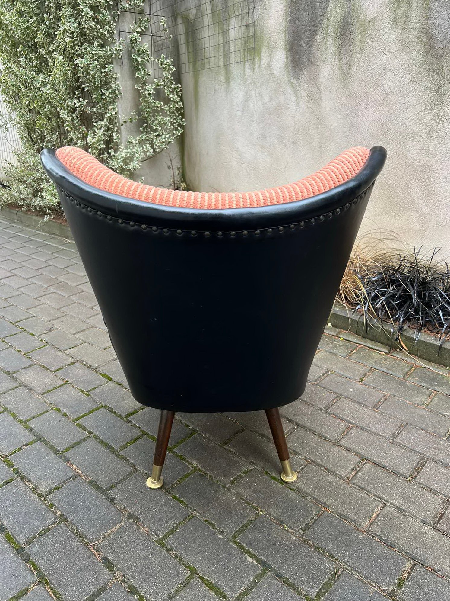 Fotelis, foteliukas Mid-century modern stiliaus. Atkaltės aukštis 75, sėdimos dalies aukštis 40, plotis 53, atkaltės plotis 64, gylis 45 cm. Kaina 168
