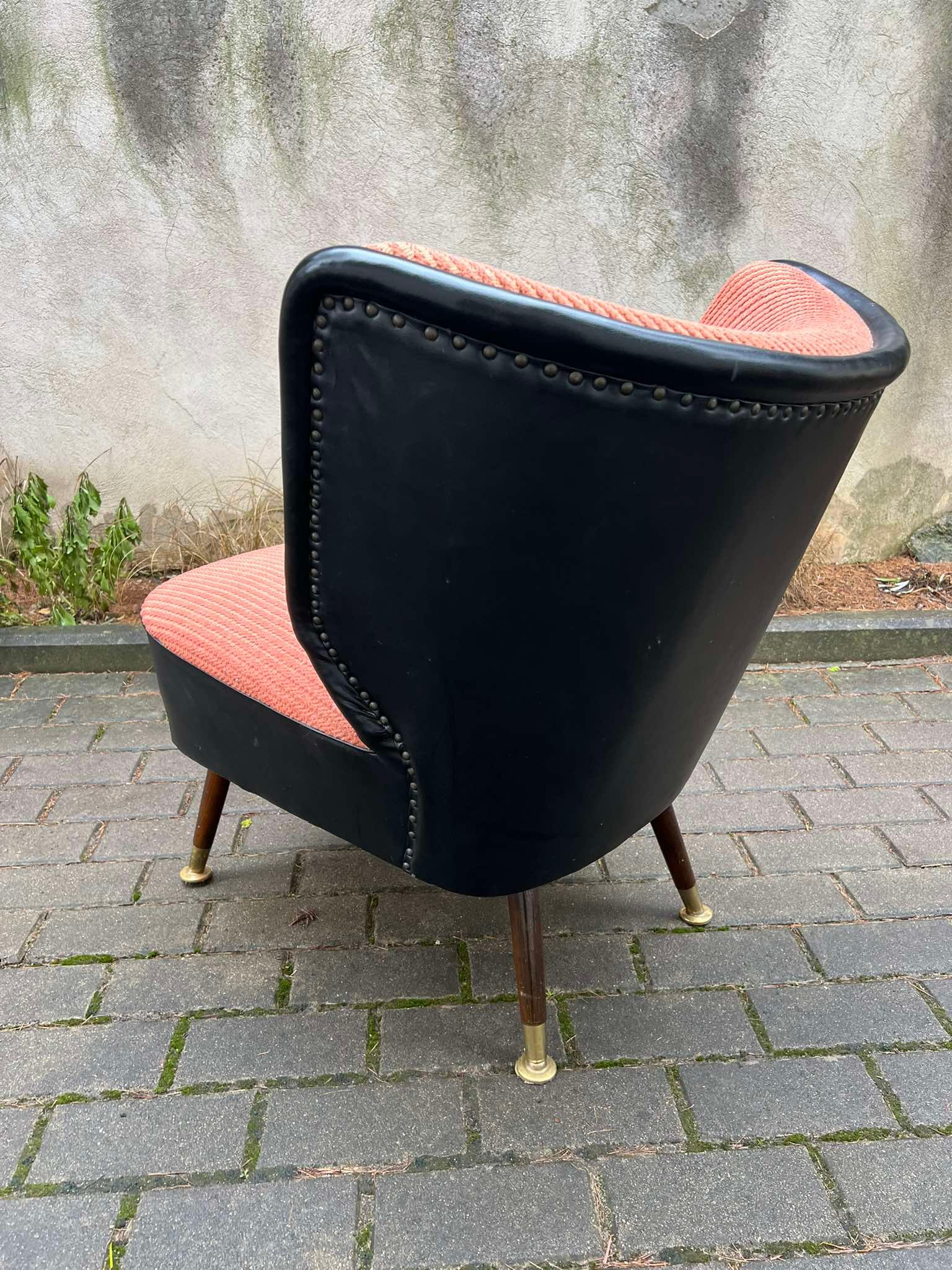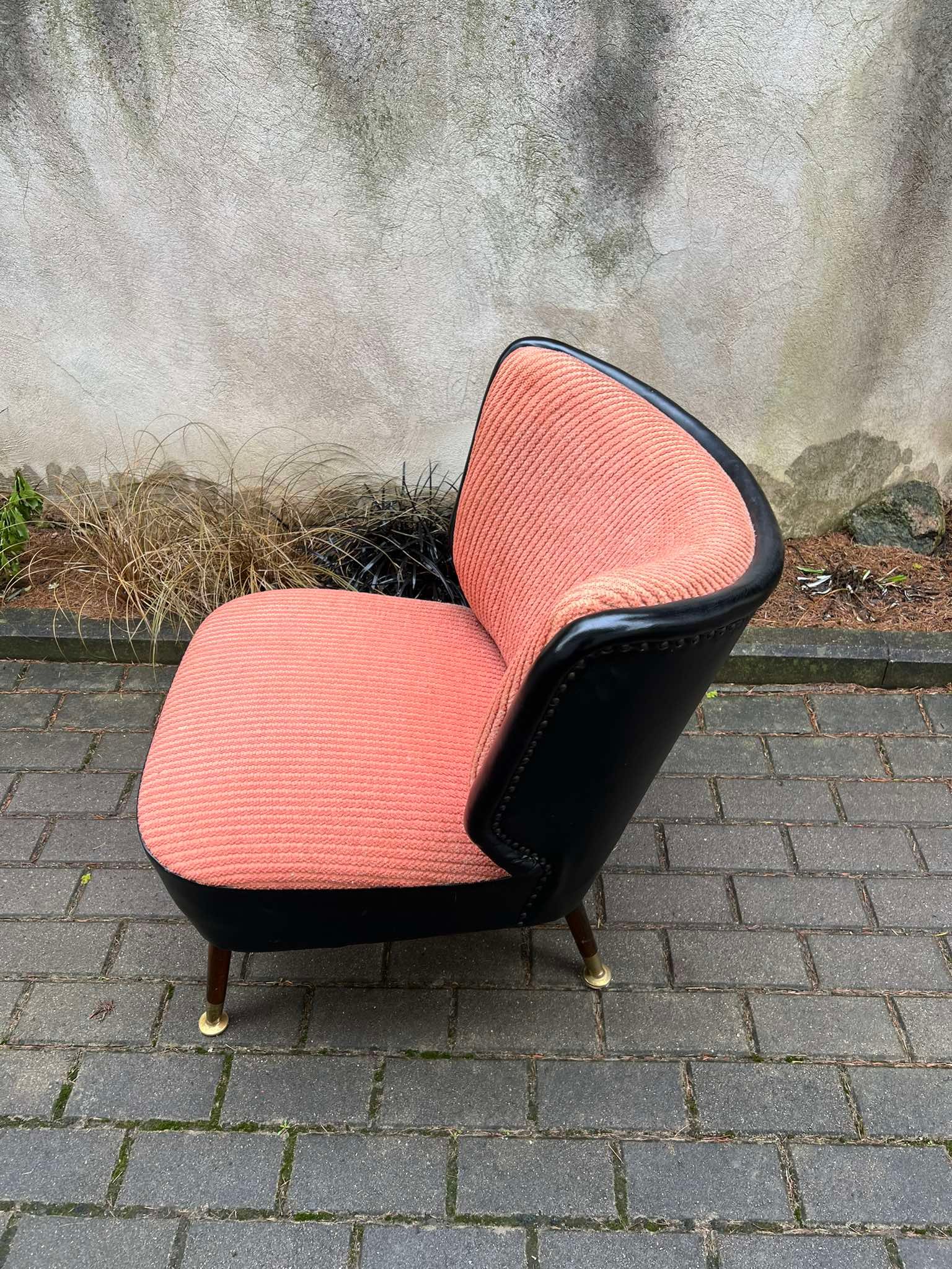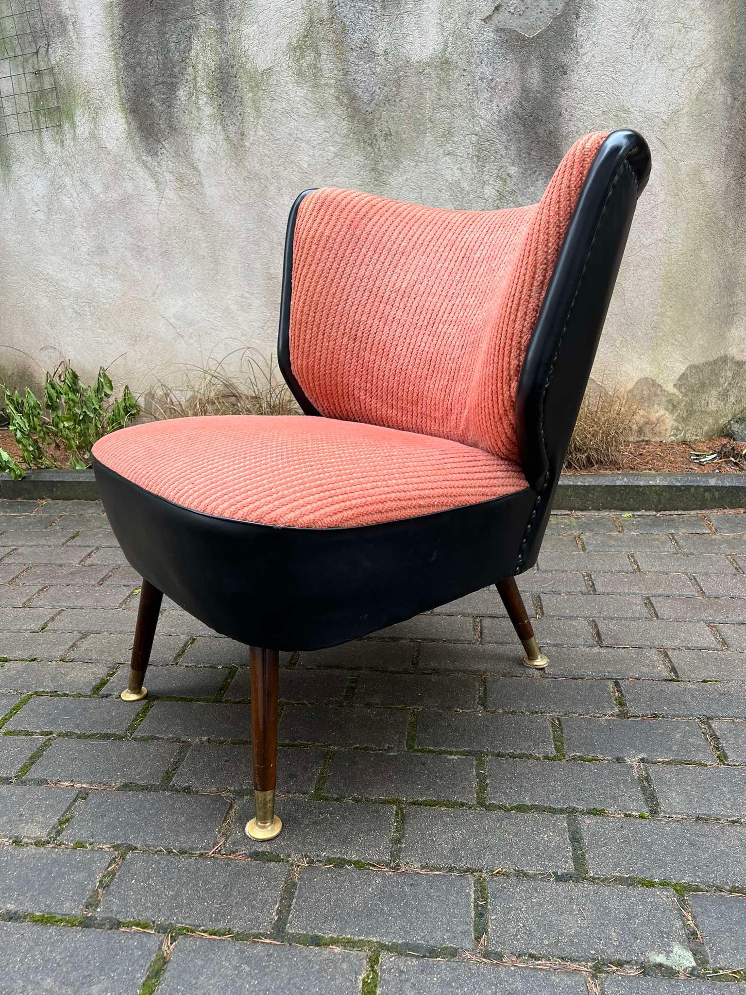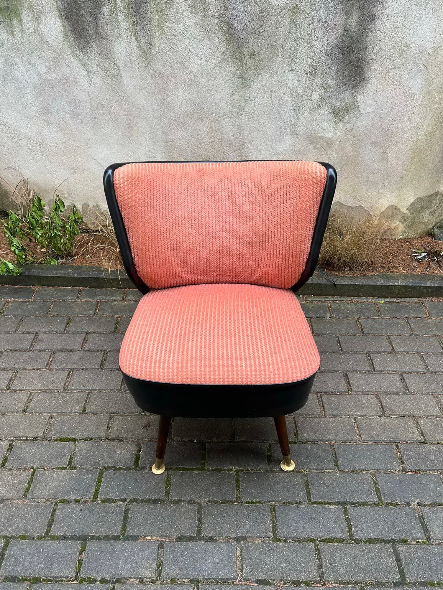 Fotelis, foteliukas Mid-century modern stiliaus. Atkaltės aukštis 75, sėdimos dalies aukštis 40, plotis 53, atkaltės plotis 64, gylis 45 cm. Kaina 168