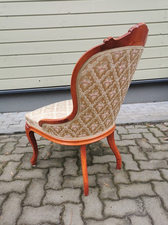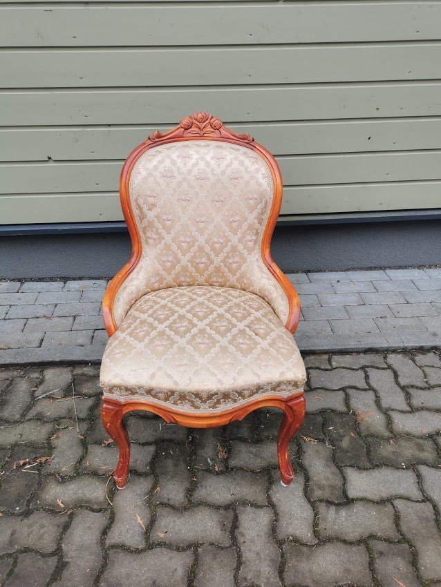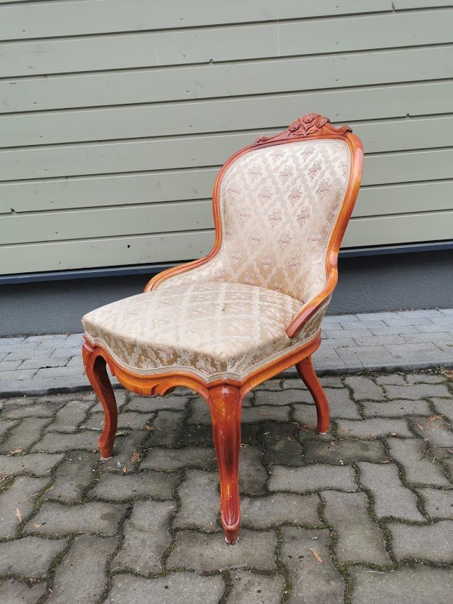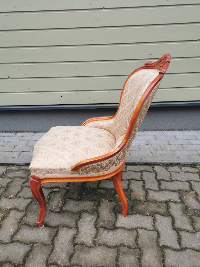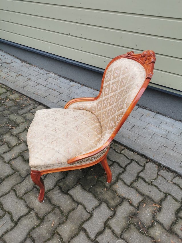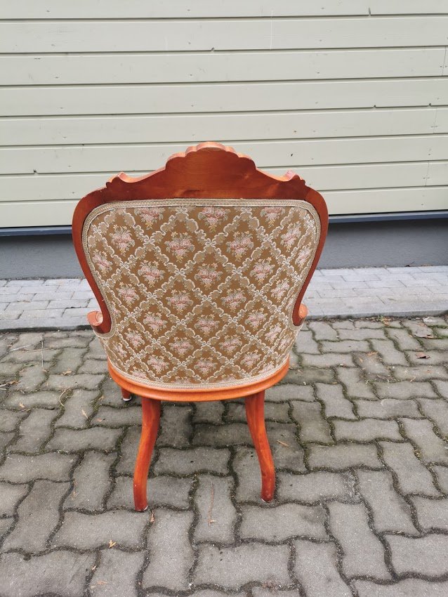 Fotelis, krėslas Emma. Atkaltės aukštis 92, plotis 57, sėdimosios dalies gylis 50, plotis 55 cm. Kaina 168