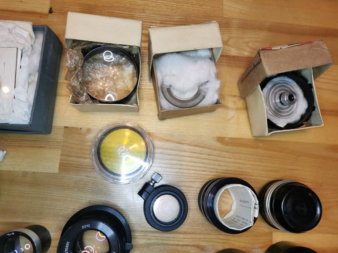 Foto reikmenys tarybinių laikų. Parduodama tik viskas kartu. Nuotraukoje žiedai-tai atspindys nuo blico, Objektyvai l. geros būklės. Kaina už viską – 42.
