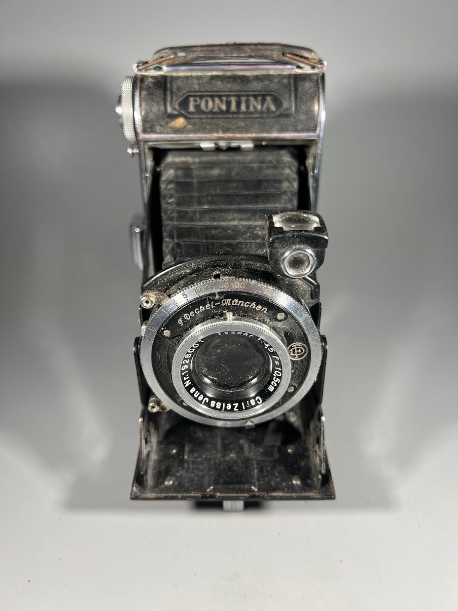 Fotoaparatas dumplinis, sulankstomas, antikvaris, tarpukario laikų Balda Pontina, Vokietija, 1936 m. Kaina 88