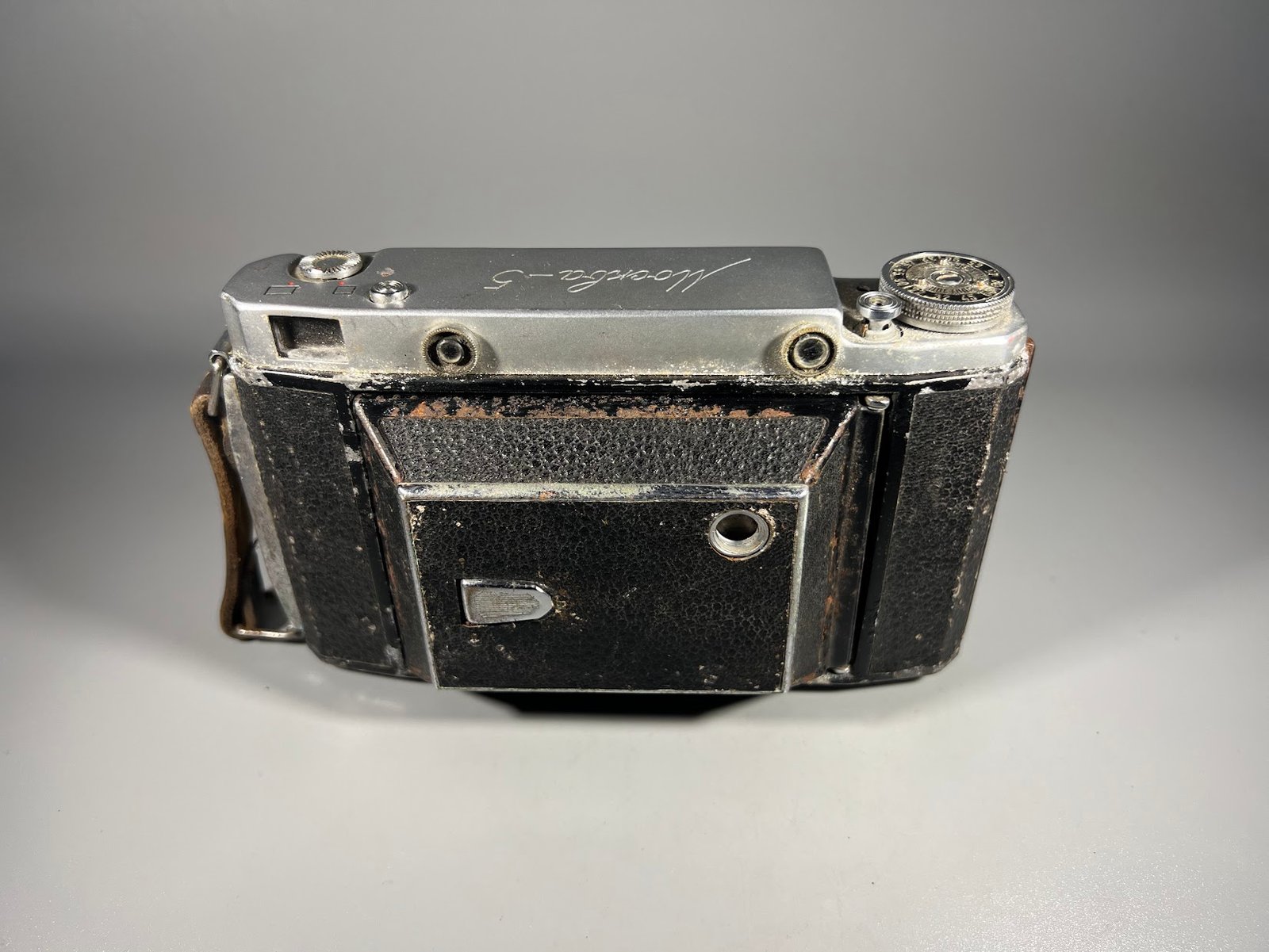 Fotoaparatas dumplinis, sulankstomas Moskva-5, Москва-5 sovietinis, tarybinių laikų, KMZ gamykla. 1956-1960 m. Kaina 38