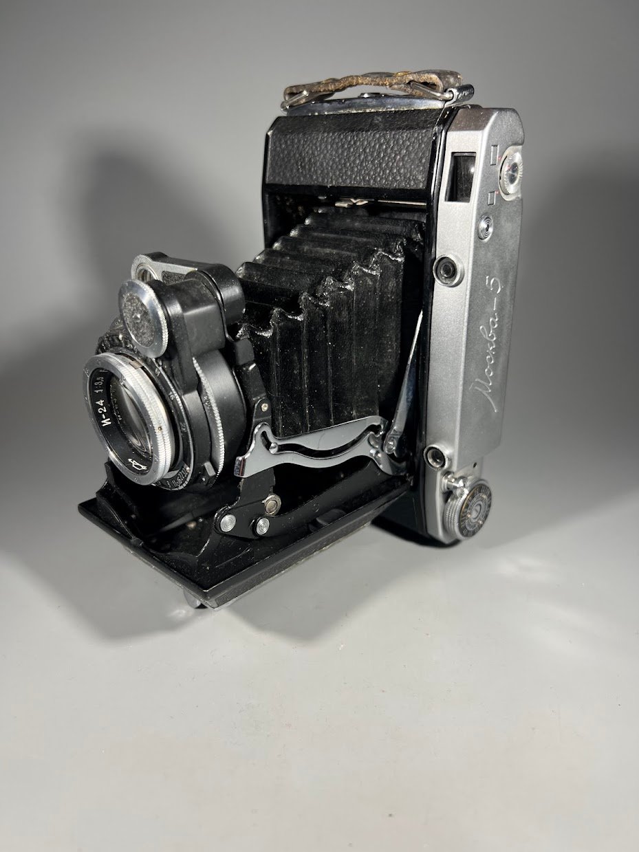 Fotoaparatas dumplinis, sulankstomas Moskva-5, Москва-5 sovietinis, tarybinių laikų, KMZ gamykla. 1956-1960 m. Kaina 68