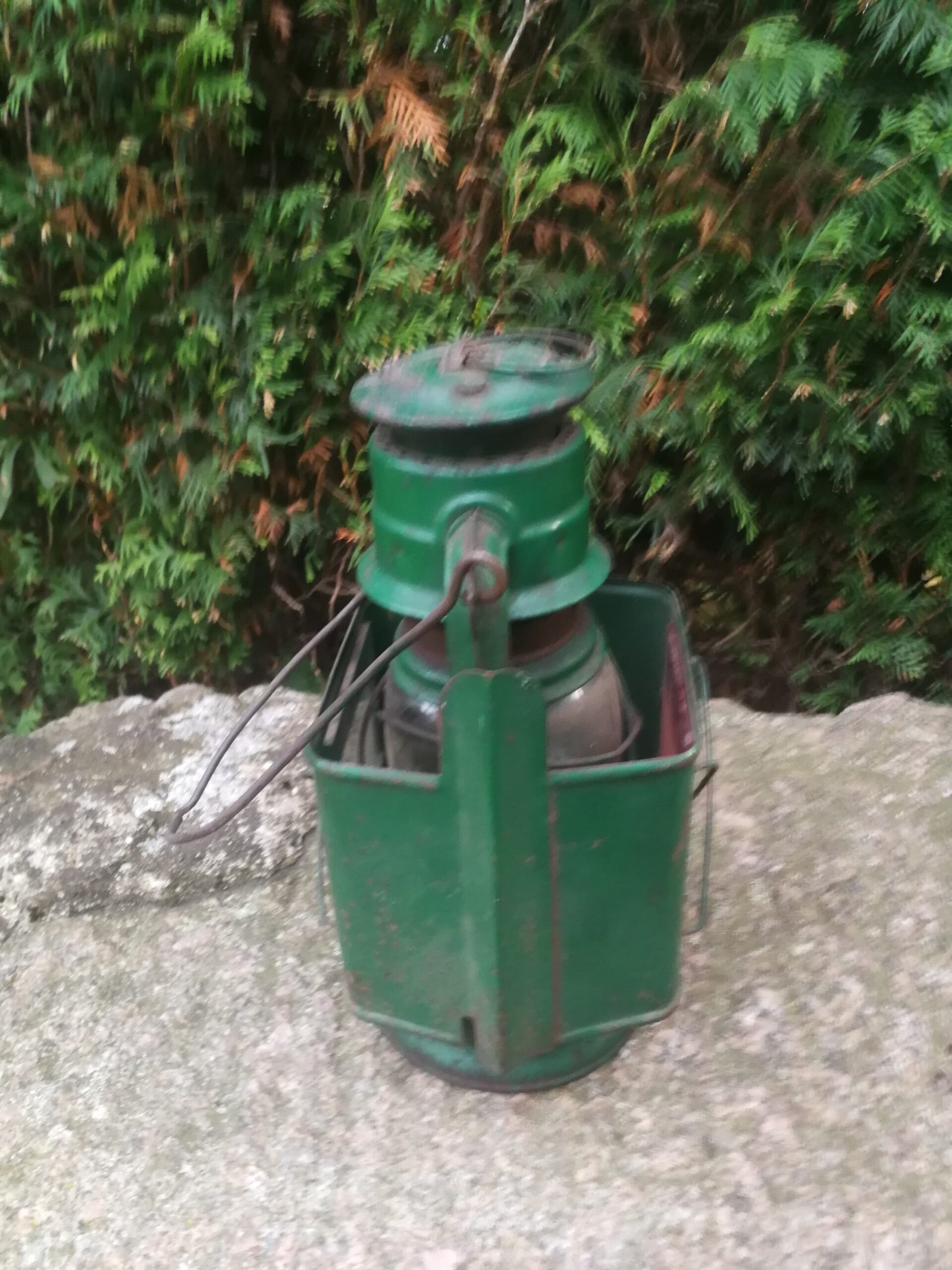 Geležinkeliečių žibintas, lempa žibalinė žalia. Kaina 42