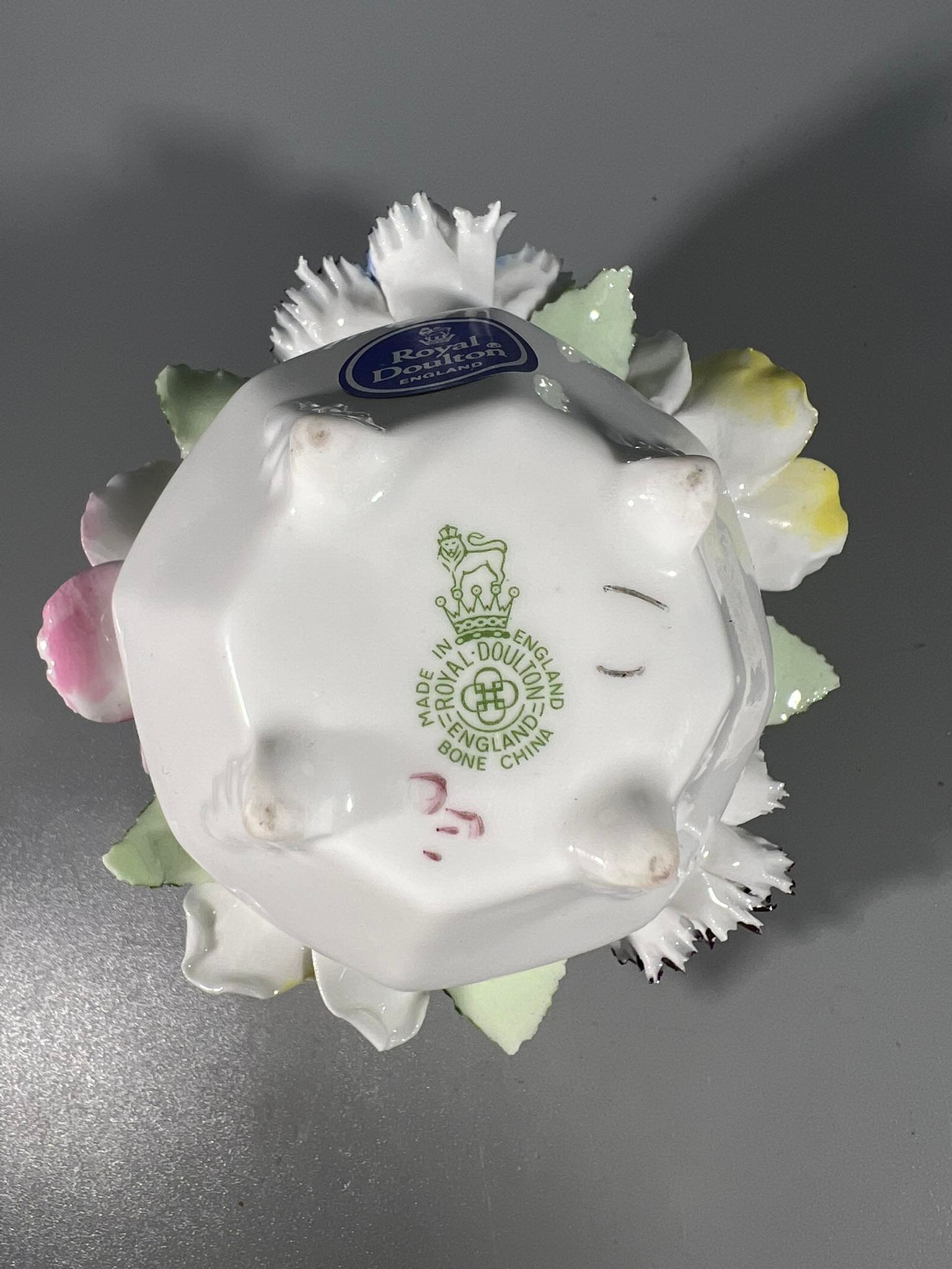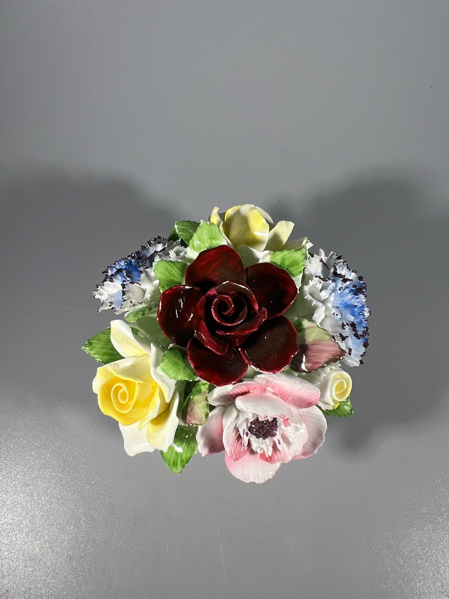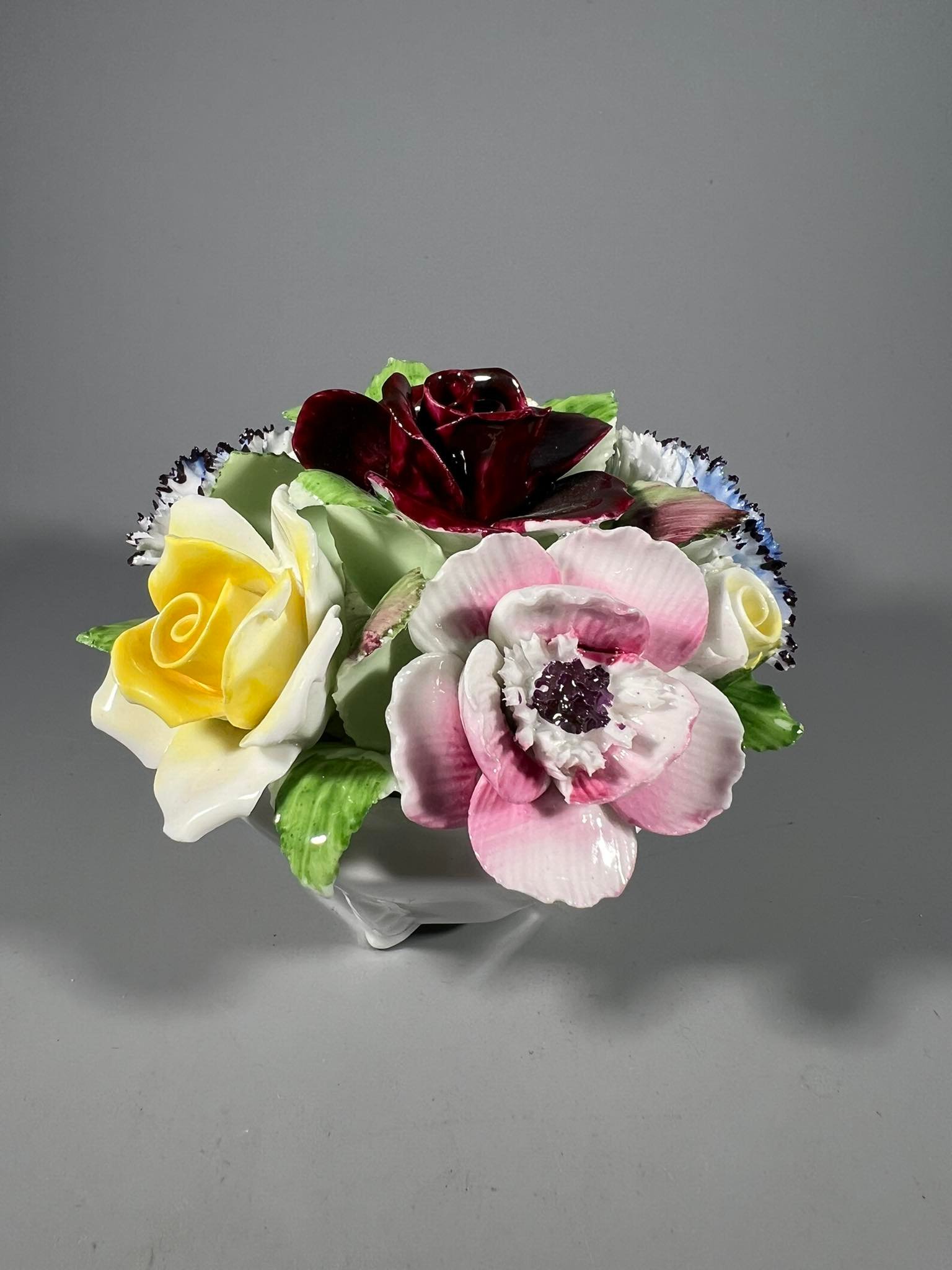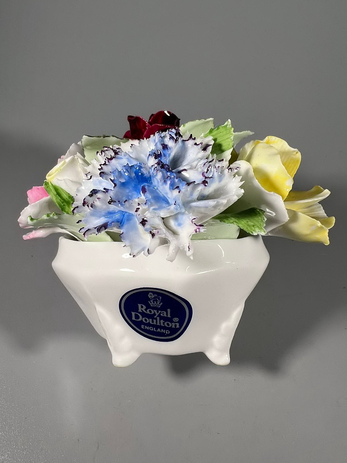 Gėlių kompozicija, gėlės vazonėlyje, puokštė, porcelianinė, angliška, rankų darbo, Royal Doulton, England. Aukštis 8, skersmuo 10 cm. Neapskilus. Kaina 27