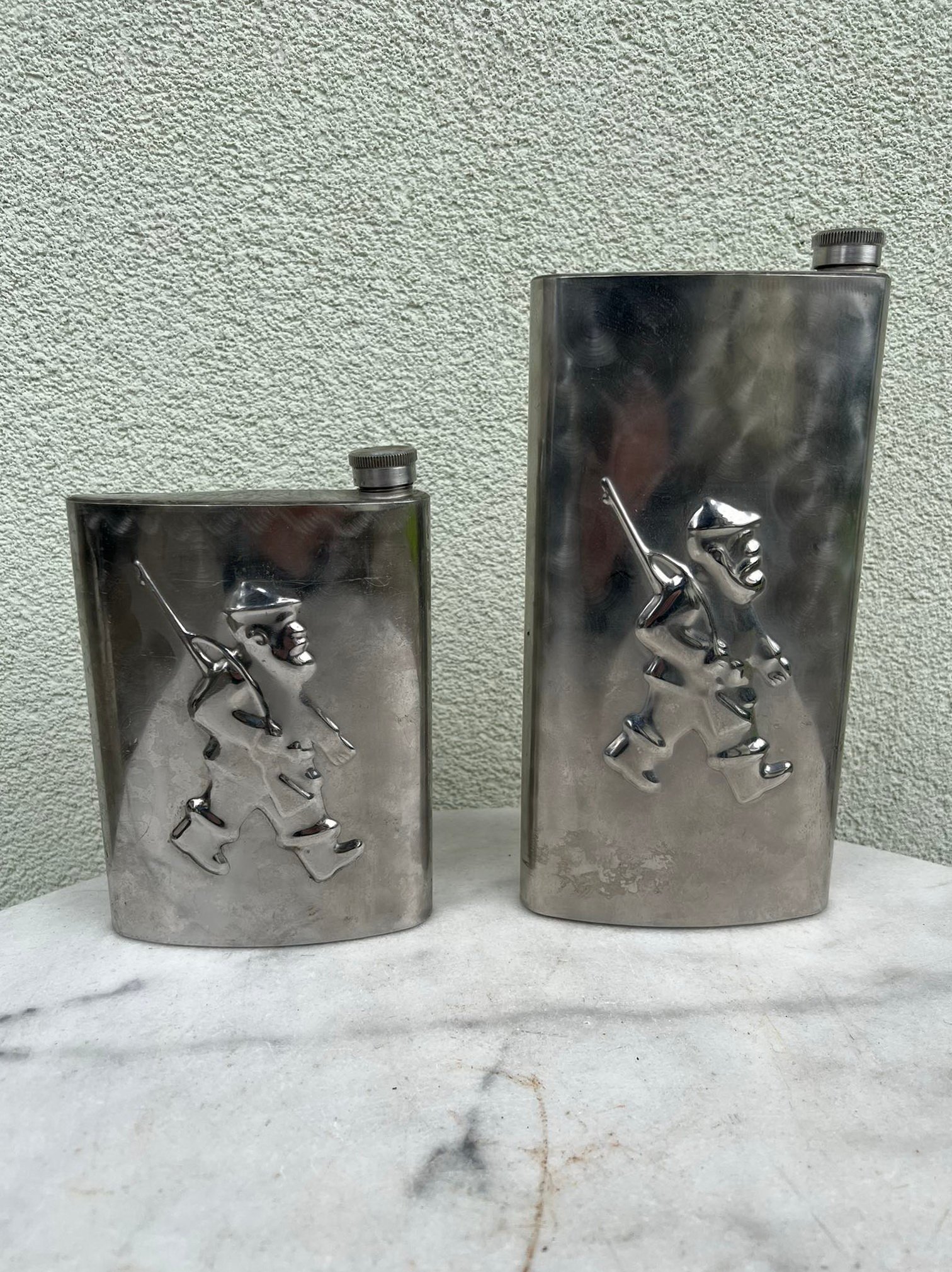 Gertuvės plieninės medžiotojų, gertuvė su reljefiniu medžiotojo atvaizdu. Plotis 13 cm. Storis 3 cm. Aukštis be kamščio: 17 ir 24 cm. Kaina: 16 ir 26