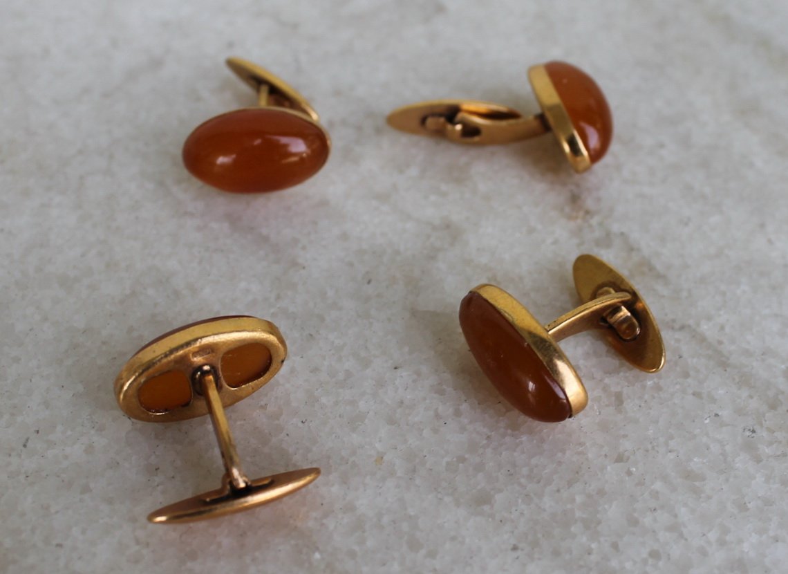 Gintarines sasagos. 2 poros. Kiekvienoje sasagoje fabriko ispaudai rusiskomis raidemis. Kaina po 13