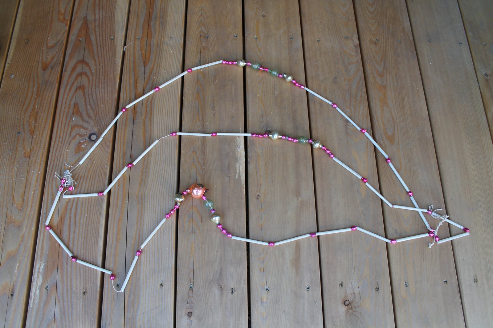Girlianda eglutės stiklinė, antikvarinė sudaryta iš 3 šaku po 60 cm. Kaina 33