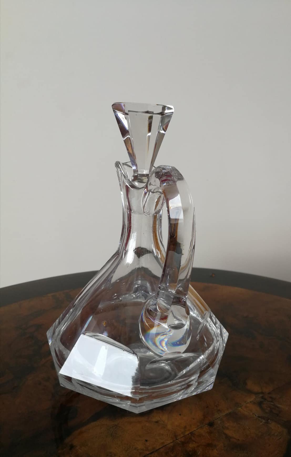 Art deco stiliaus antikvarinis komplektas – grafinas (aukštis 22, skersmuo 14 cm.) ir saldaininė (aukštis 11, skersmuo 18 cm.). Kaina po 28