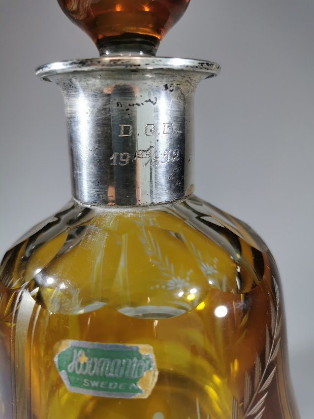 Grafinas puoštas sidabru, antikvarinis. Švedija. Aukštis 23 cm. Svoris 1,4 kg. Kaina 93