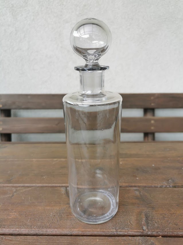Grafinas stiklinis. Aukštis 27, skersmuo 7 cm. Kaina 33