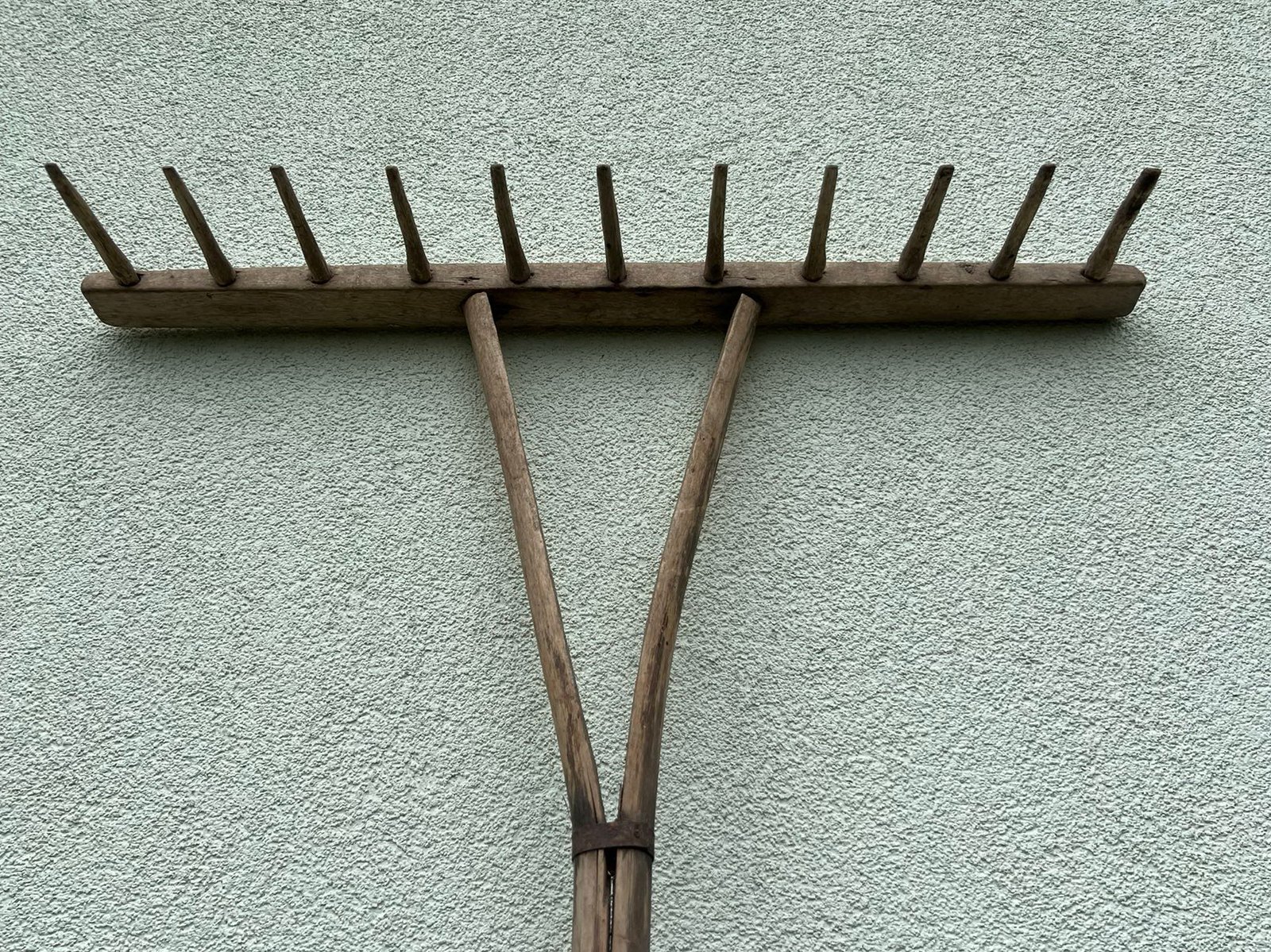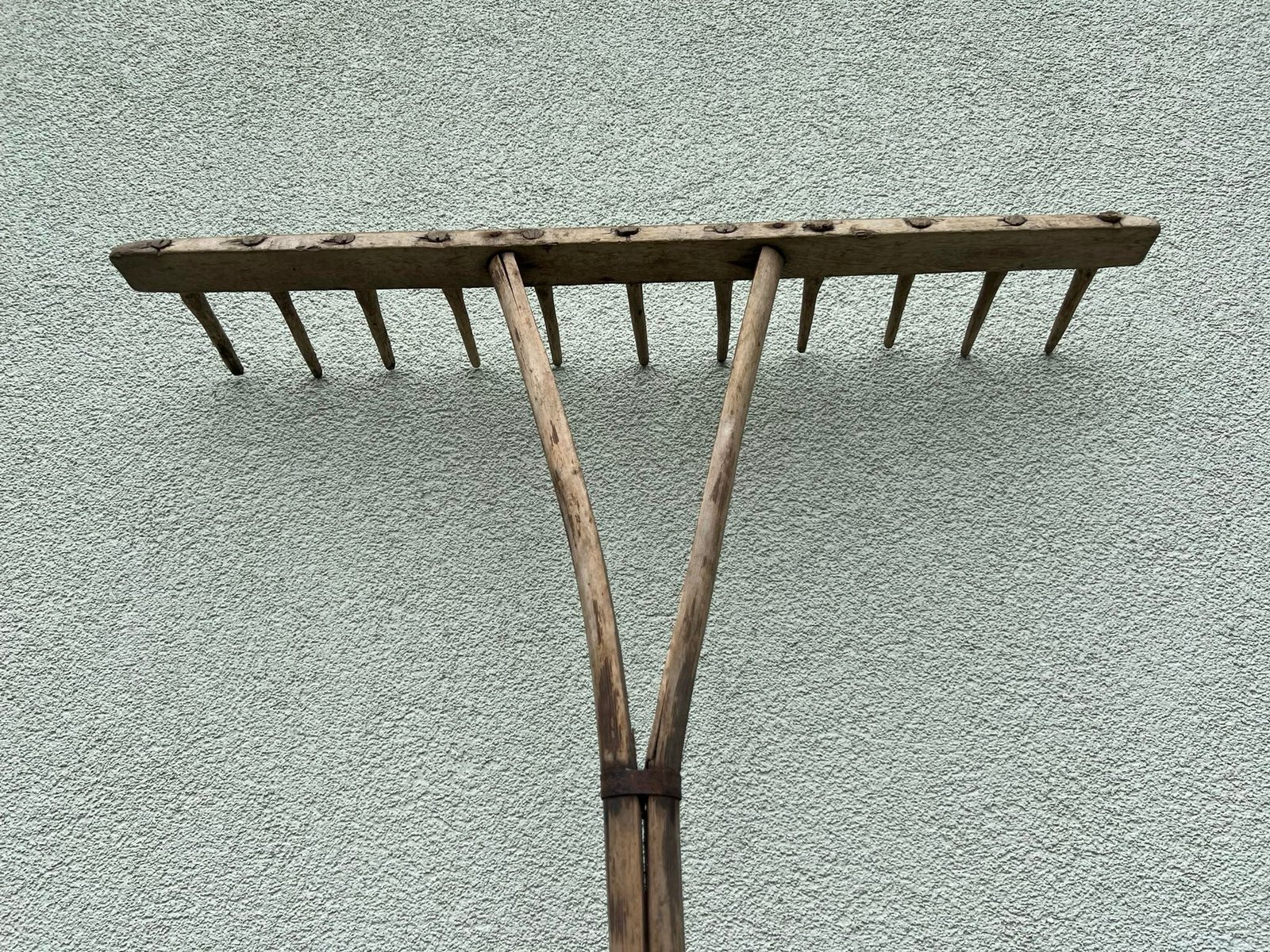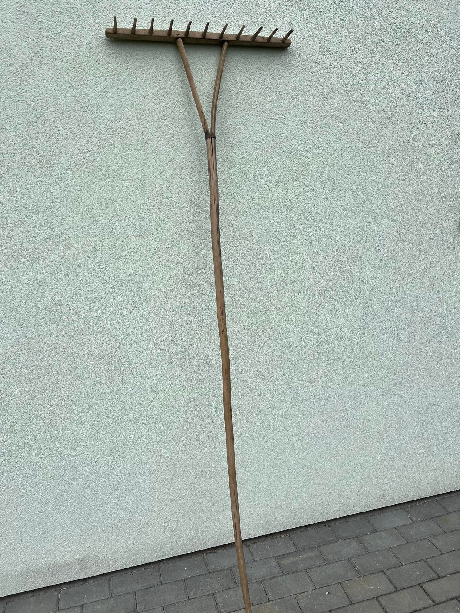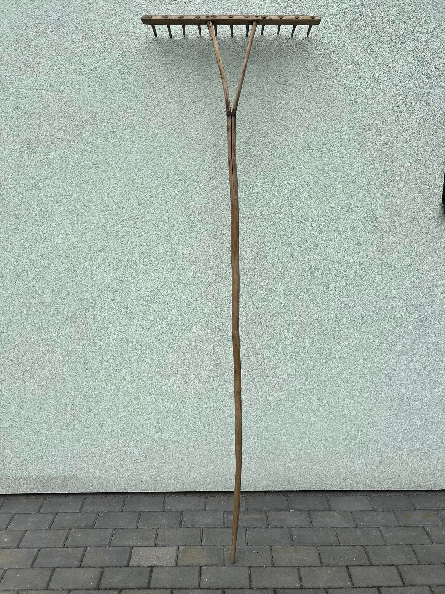 Grėblys medinis, antikvarinis. Ilgis 215 cm. Plotis 64 cm. Kaina 48