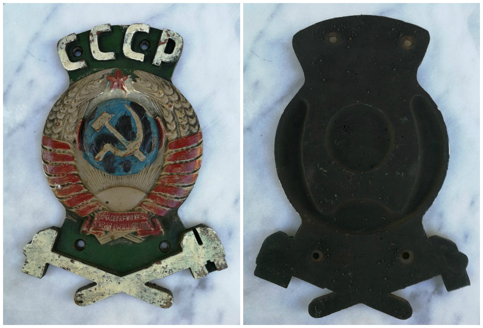 Herbas CCCP, TSRS traukinio spizinis (ketaus). Dydis: 38 x 28 cm. Svoris 5,2 kg. Kaina 223