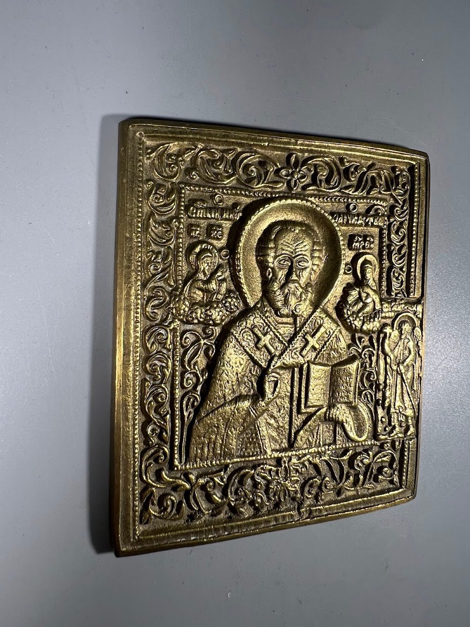 Ikona, plaketė Nikolajus Stebukladarys, antikvarinė, stačiatikių, krikščionių ortodoksų, pravoslavų bronzinė. Kaina 138