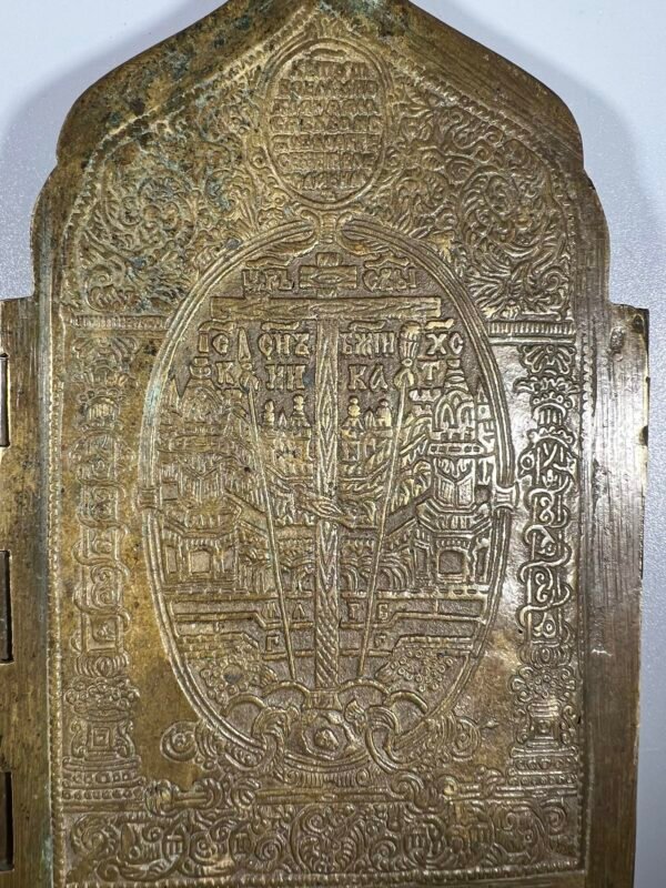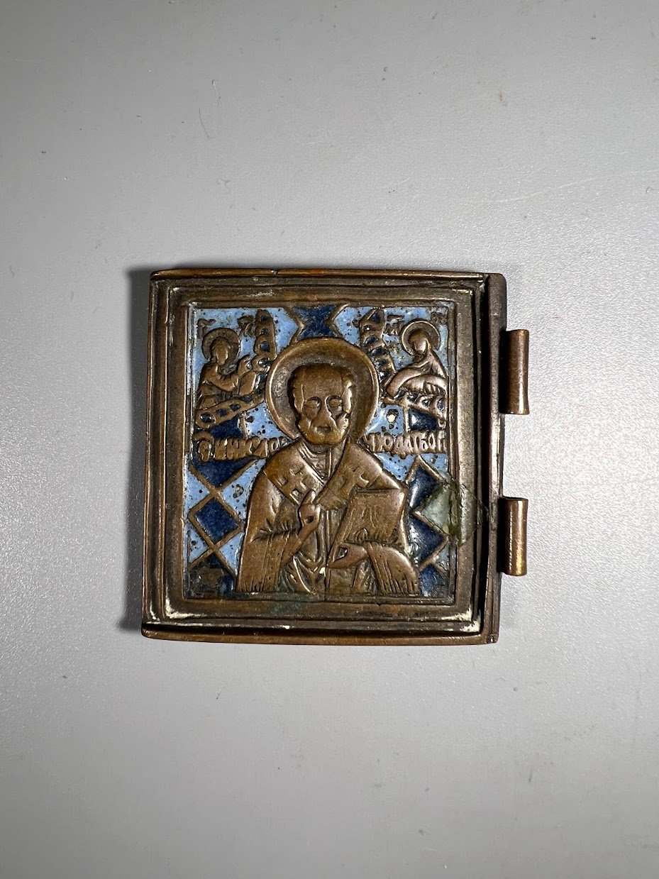 Ikona stačiatikių kelioninė, vaizduojanti Šventąjį Nikolajų Stebukladarį, rus. Николай Чудотворец. Triptiko dalis. XIX a. Kaina 38
