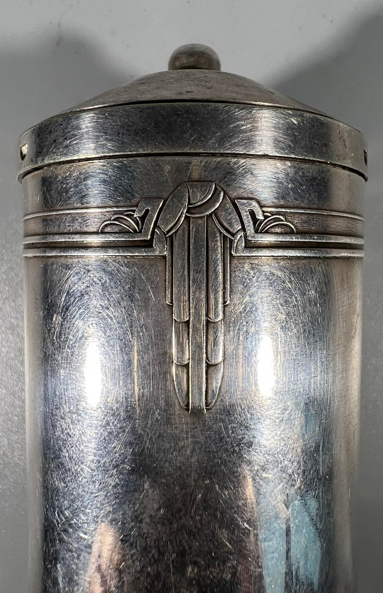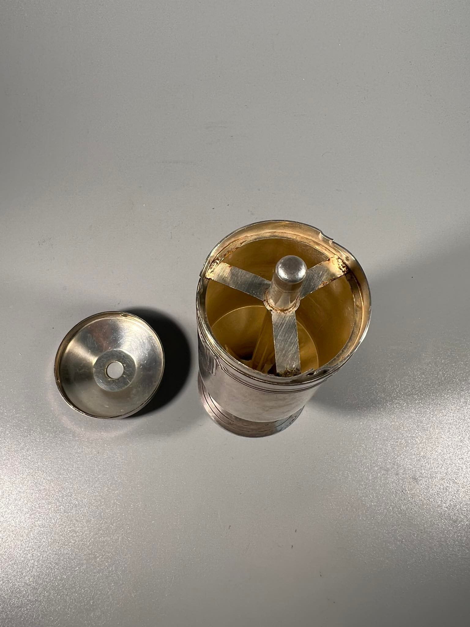 Indas, dozatorius cukrui, druskai ar prieskoniams antikvarinis, Art Nouveau stiliaus. Apollo Brevete S.G.D.G. Prancūzija. Aukštis 12, skersmuo 5 cm. Kaina 43
