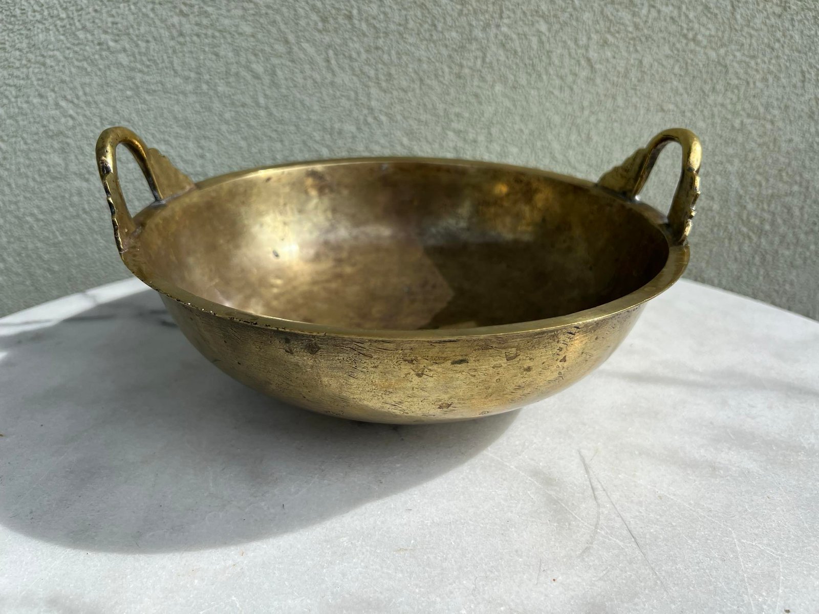Indas, dubuo žalvarinis, kaltinis, antikvarinis, su 3 kojelėm, rankenom. Skersmuo 24, aukštis 8 cm. be rankenų. Kaina 58