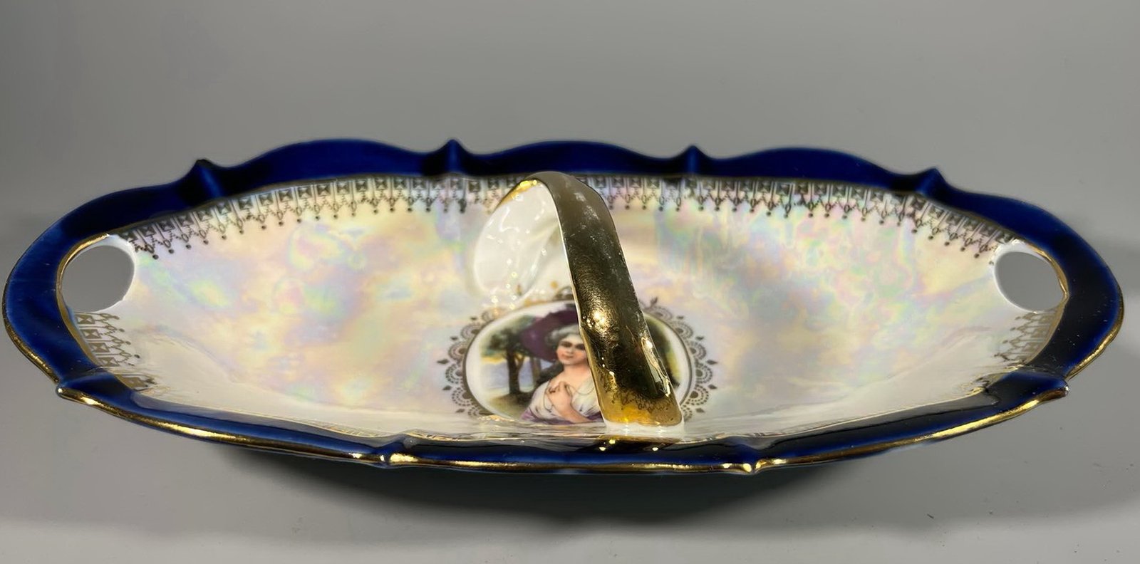 Indas, padėklas su rankena porcelianinis, antikvarinis. Kaina 26