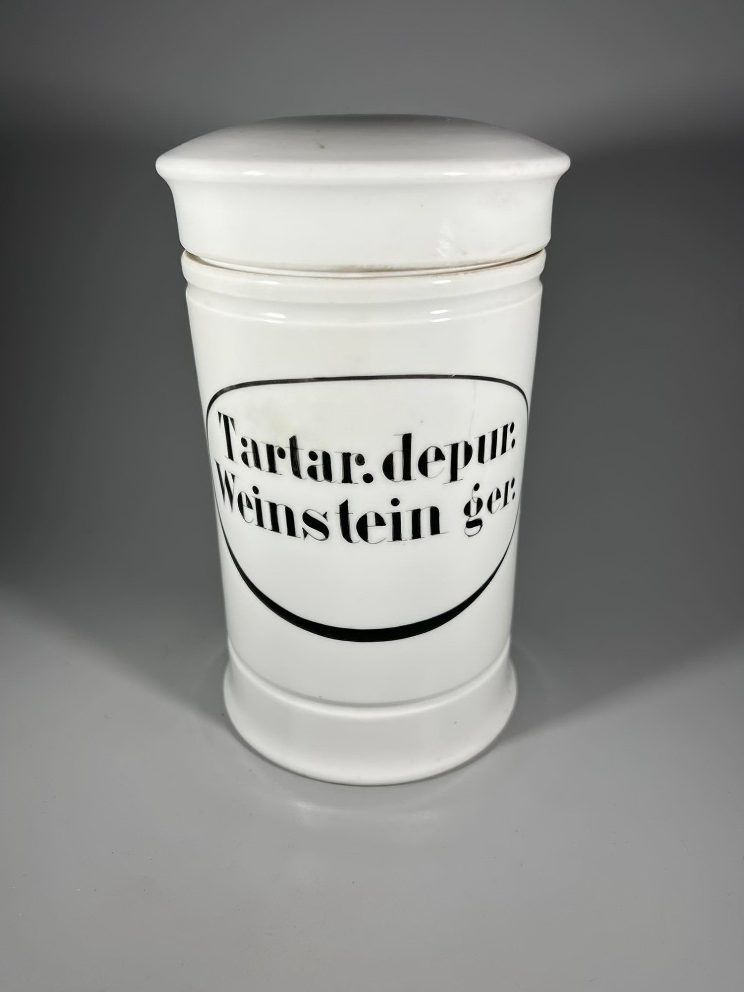 Indas vaistinės, vaistų, medicininis, porcelianinis, antikvarinis, tarpukario laikų. Vokietija. Tartar. depur. Weinstein ger. Aukštis 20, skersmuo 12 cm. Kaina 73
