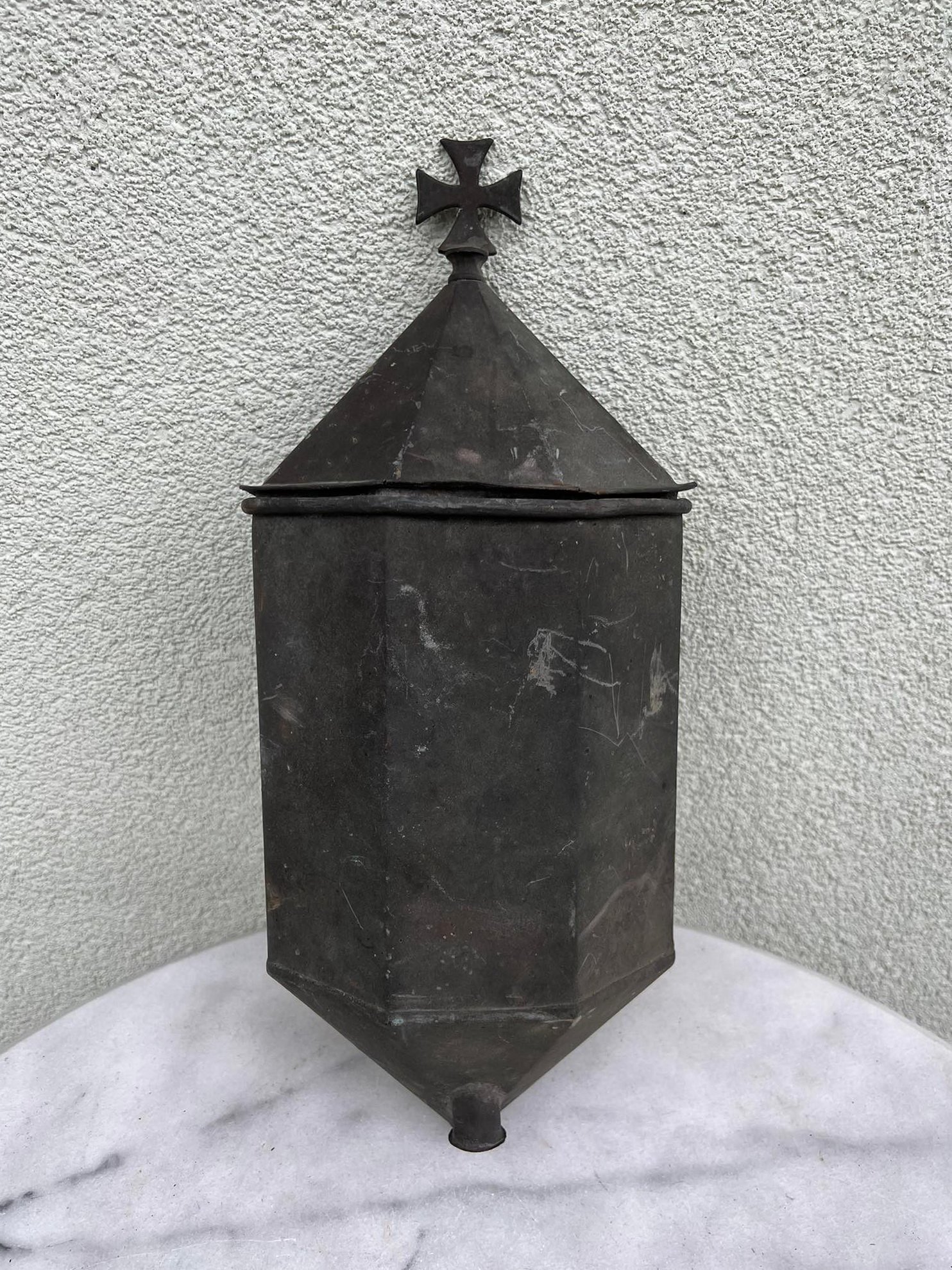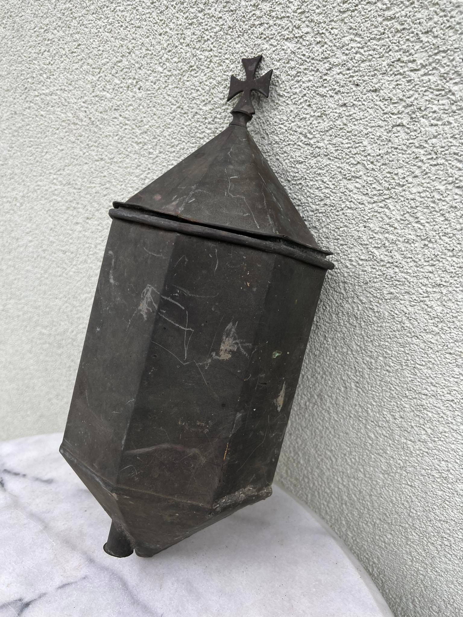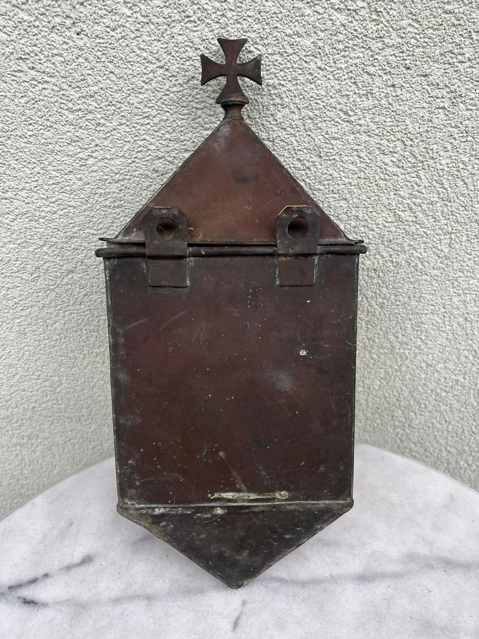Indas vandeniui puoštas kryžiumi, antikvarinis, žalvarinis. Tinkamas naudojimui. Aukštis 40, plotis 16 cm. Kaina 87