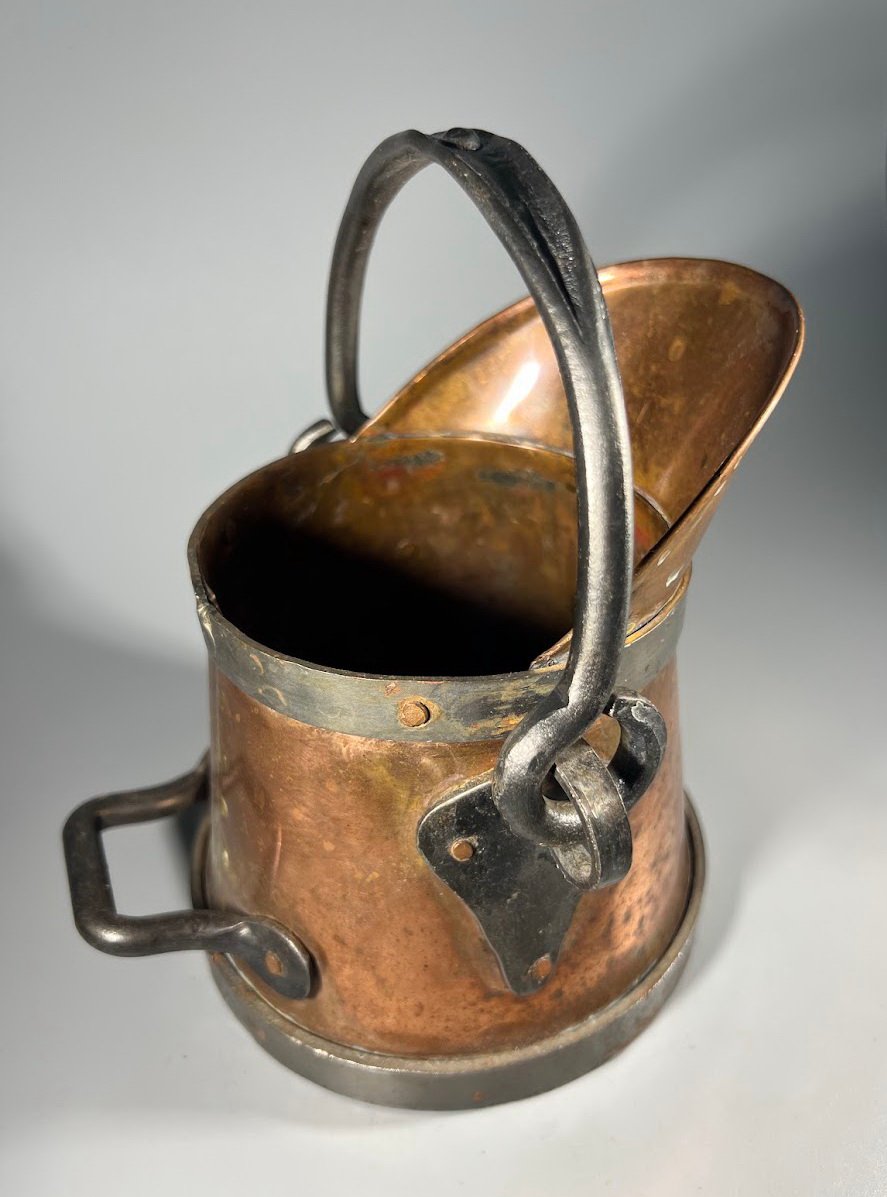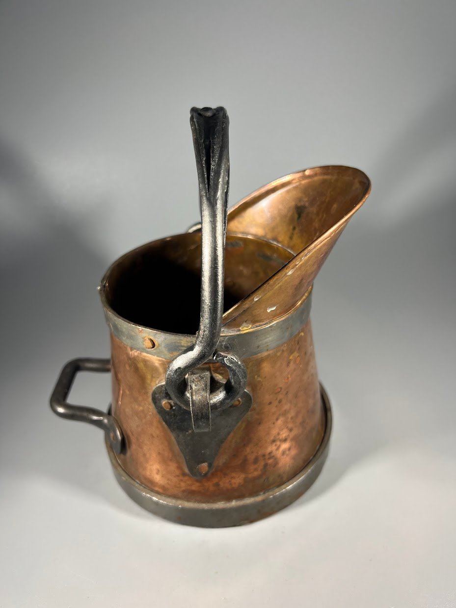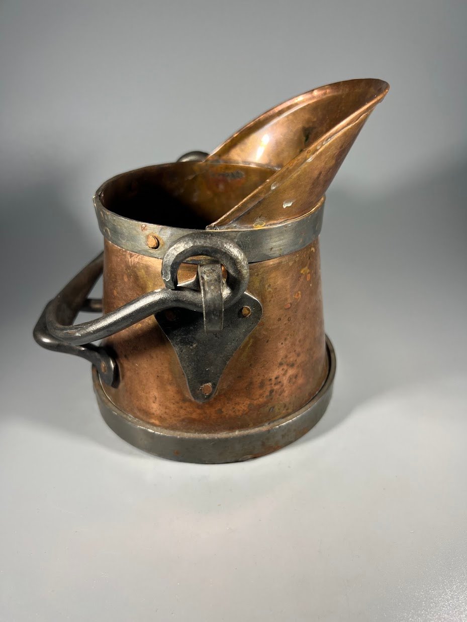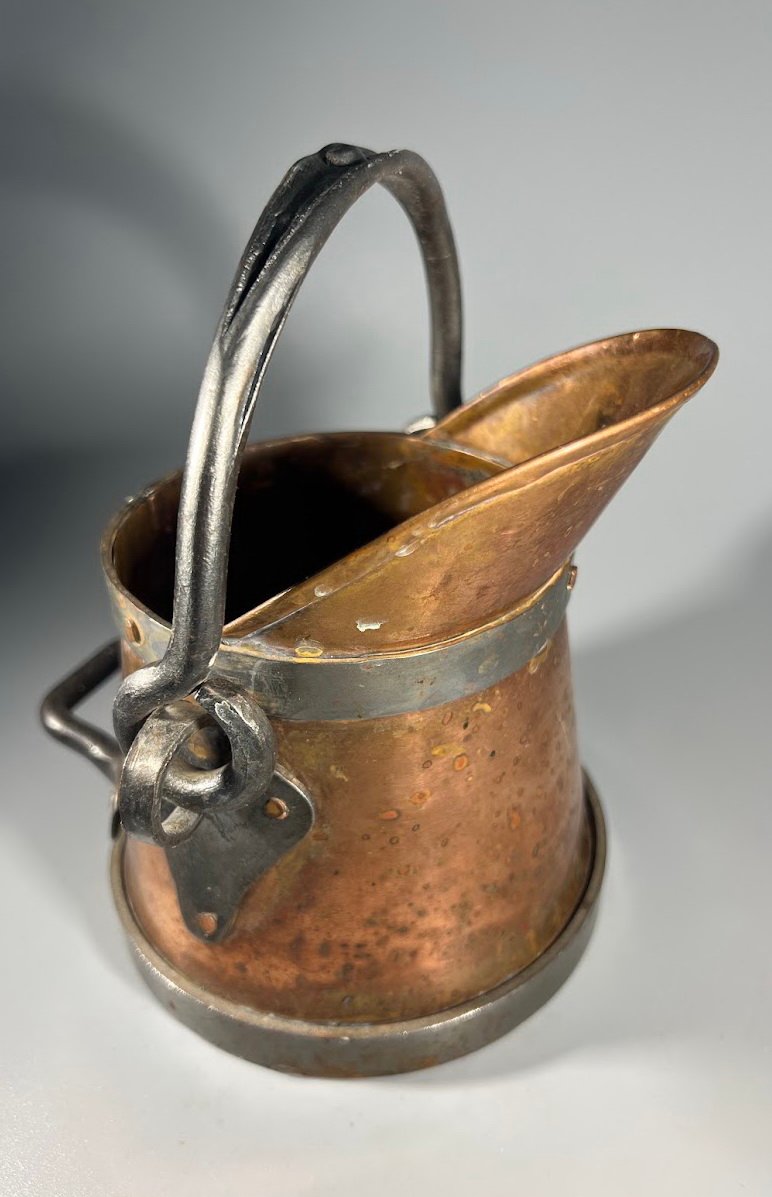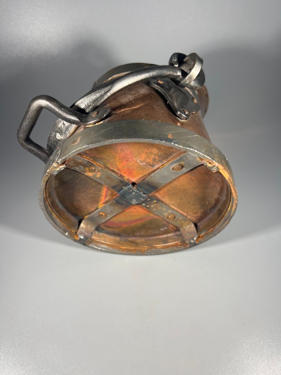 Indas varinis, kaltinis angliams, pelenams, skysčiams, vazonas. Viso aukštis 15, pagrindo skersmuo 13 cm. Kaina 28