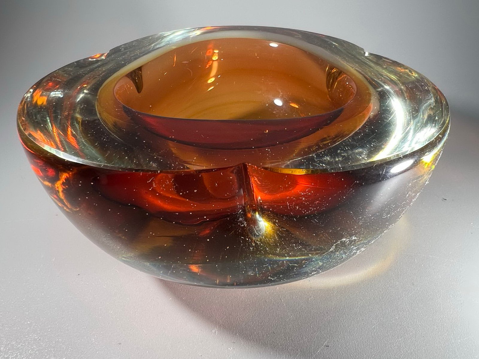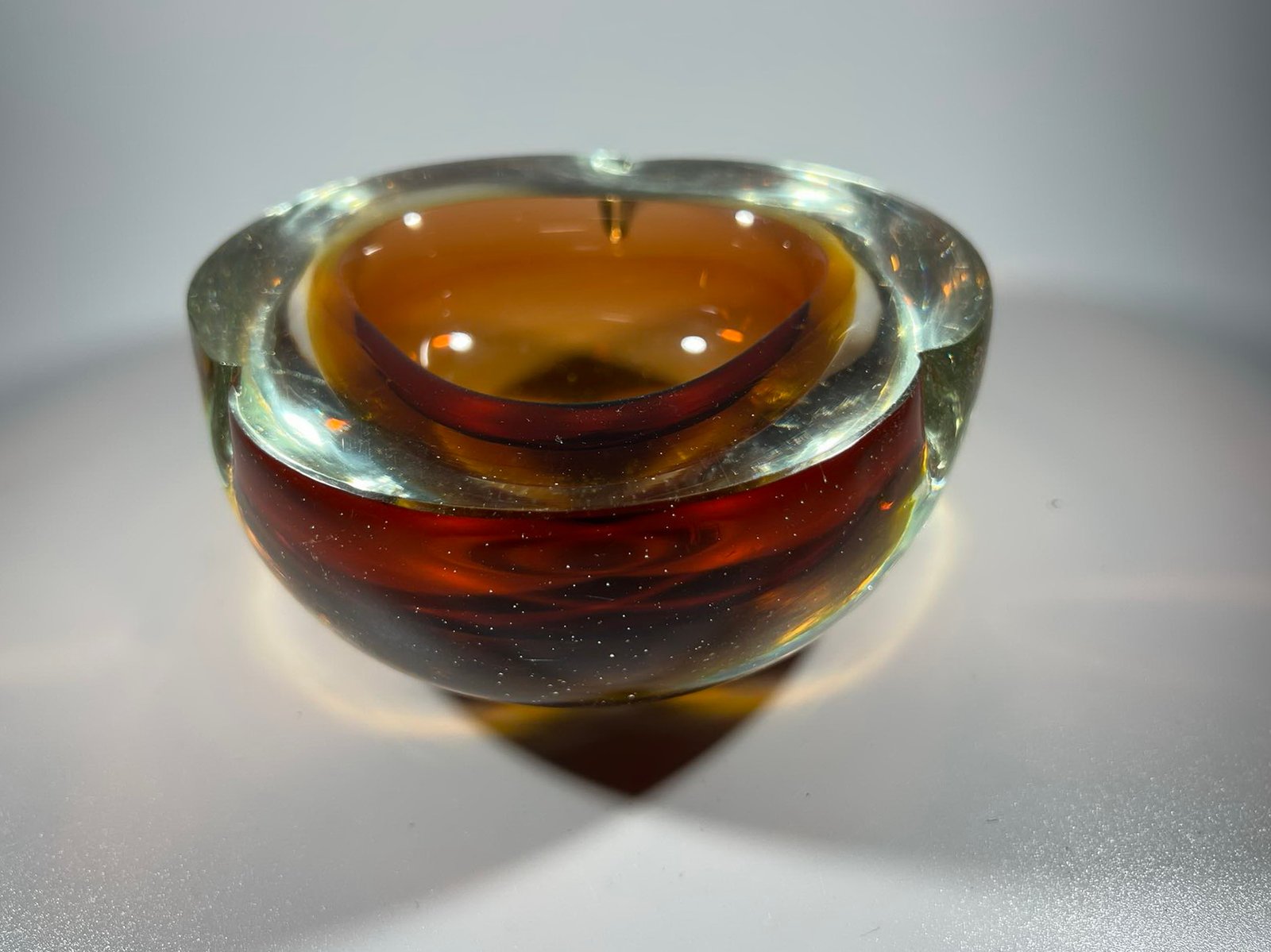 Indas, vaza vintažinė, Murano stiklo. Svoris 1,7 kg. Aukštis 8, skersmuo 15 cm. Etiketė neišlikusi. Kaina 58