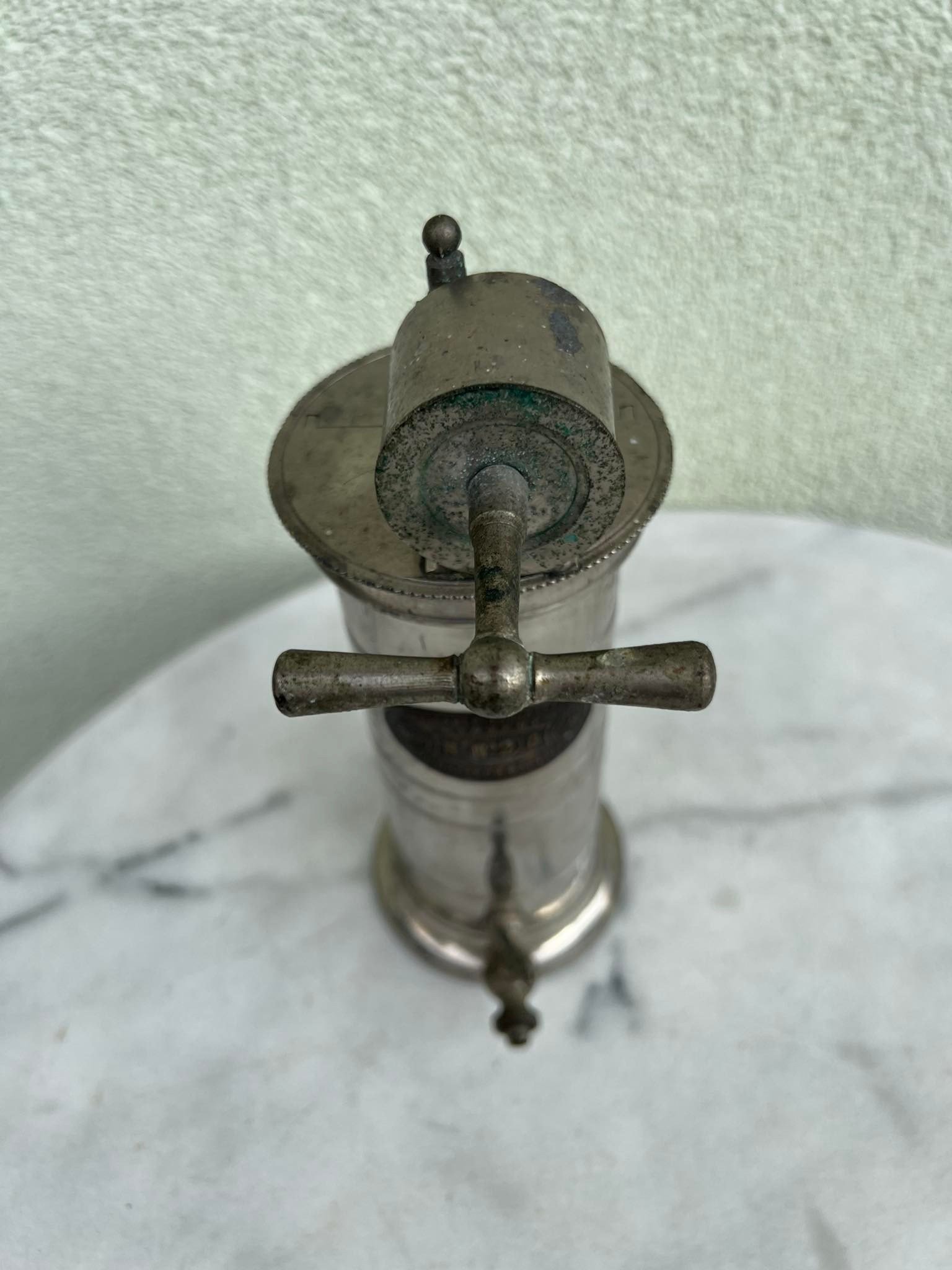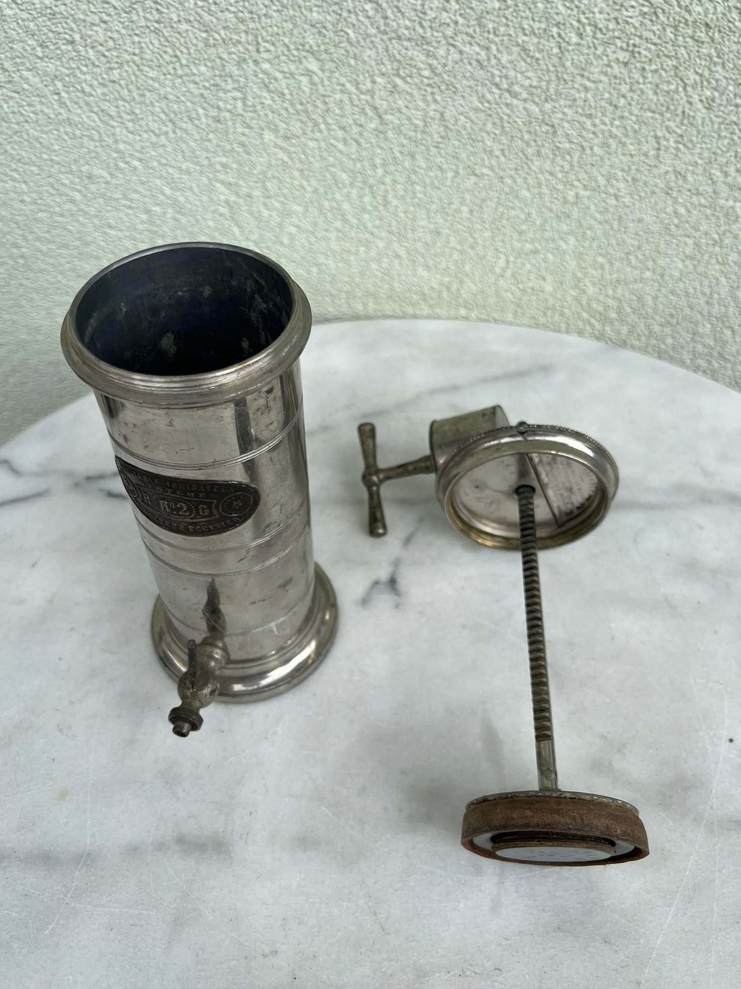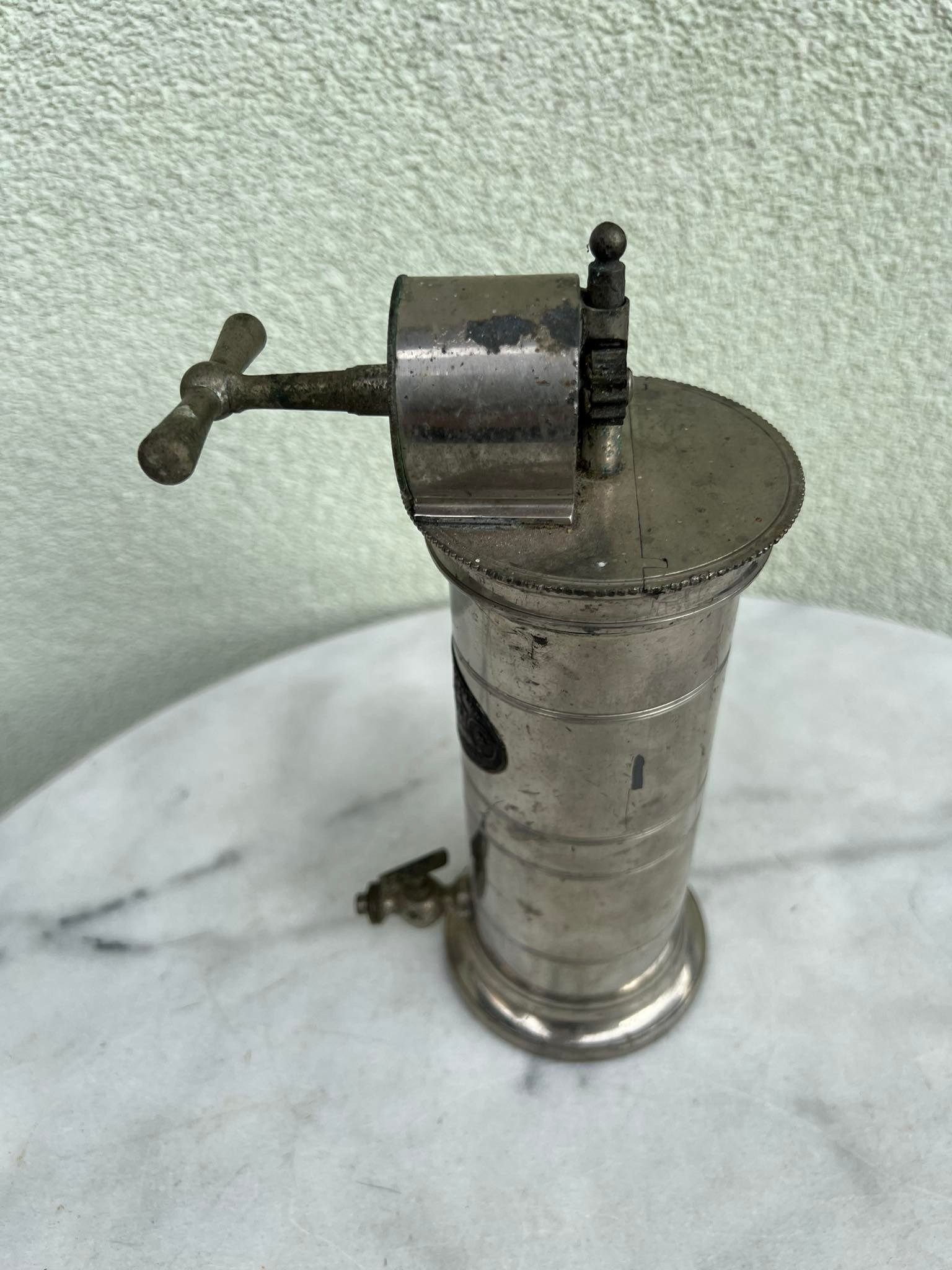 Irigatorius, antikvarinis medicininis prietaisas. Prancūzija. Aukštis 23, skersmuo 9 cm. Kaina 87