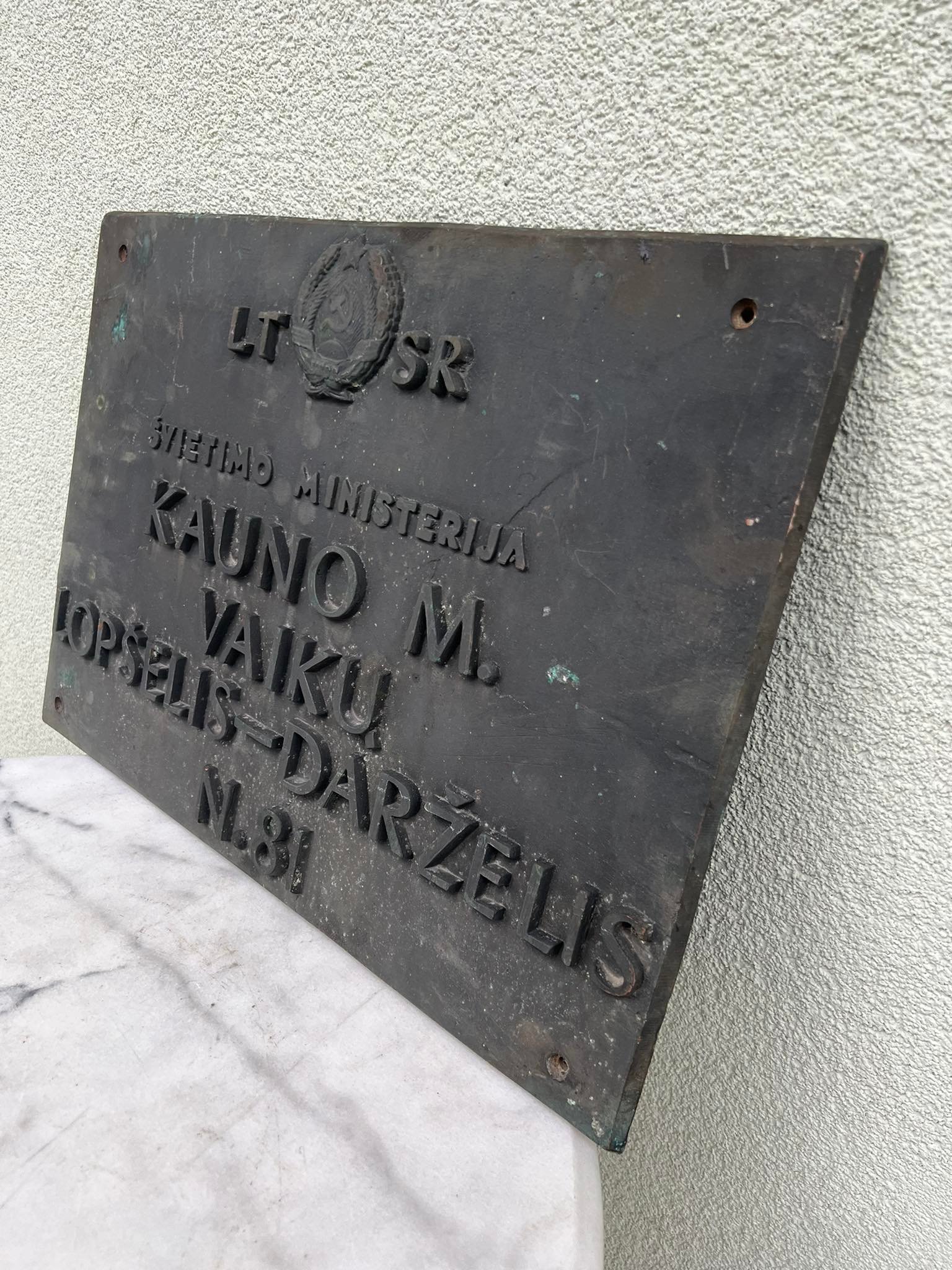 Iškaba, lenta LTSR KAUNO M. VAIKŲ LOPŠELIS-DARŽELIS NR. 81 metalinė, aliuminė LTSR laikų, sovietinė, tarybinių laikų. Kaina 68