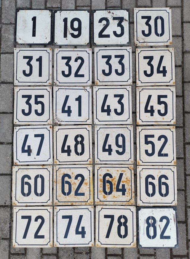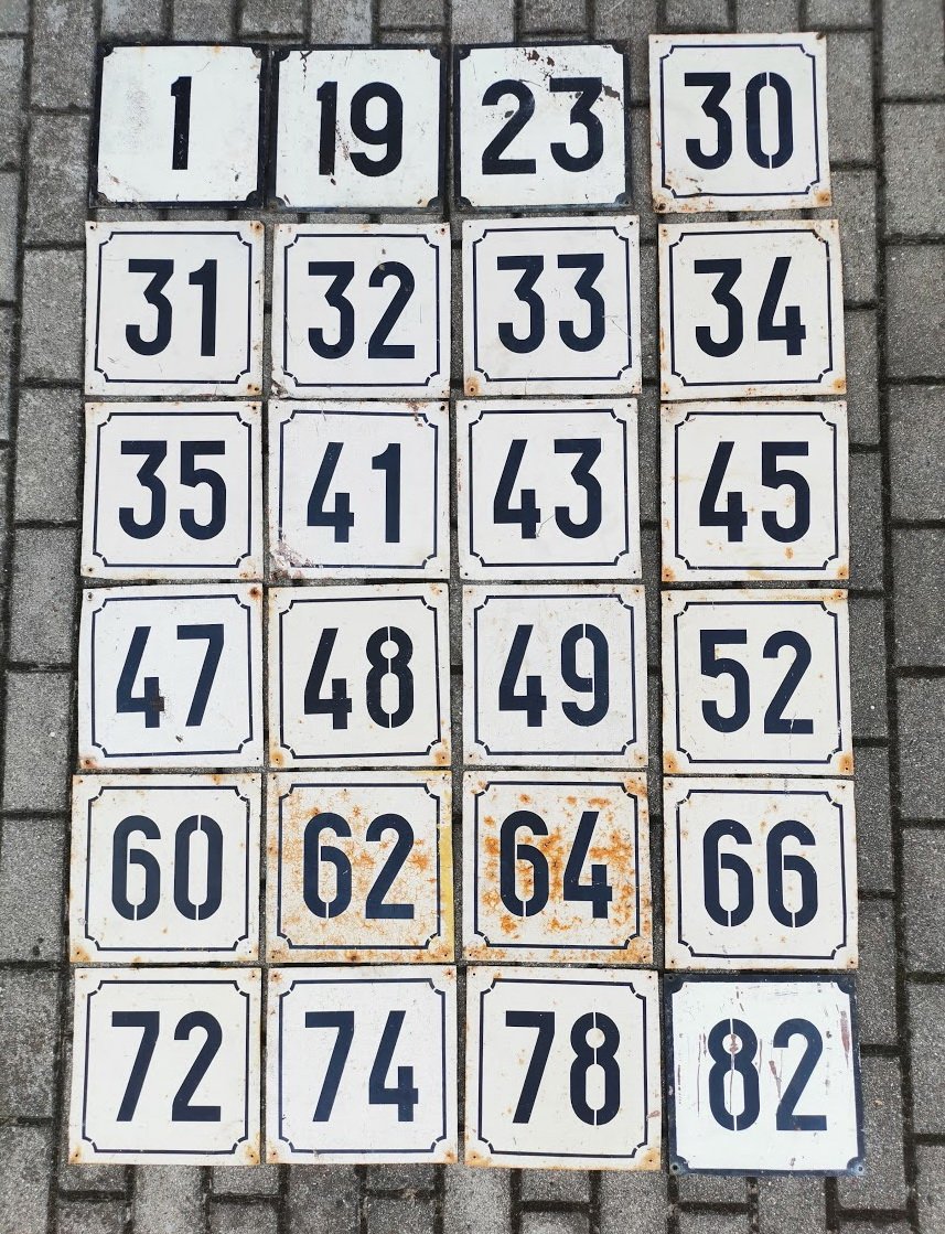 Iškaba, lentelė, skardinis tarybinių laikų namo numeris. Stora skarda. PARDUOTA: Nr. 23, 60. Kaina nuo 6 iki 11.