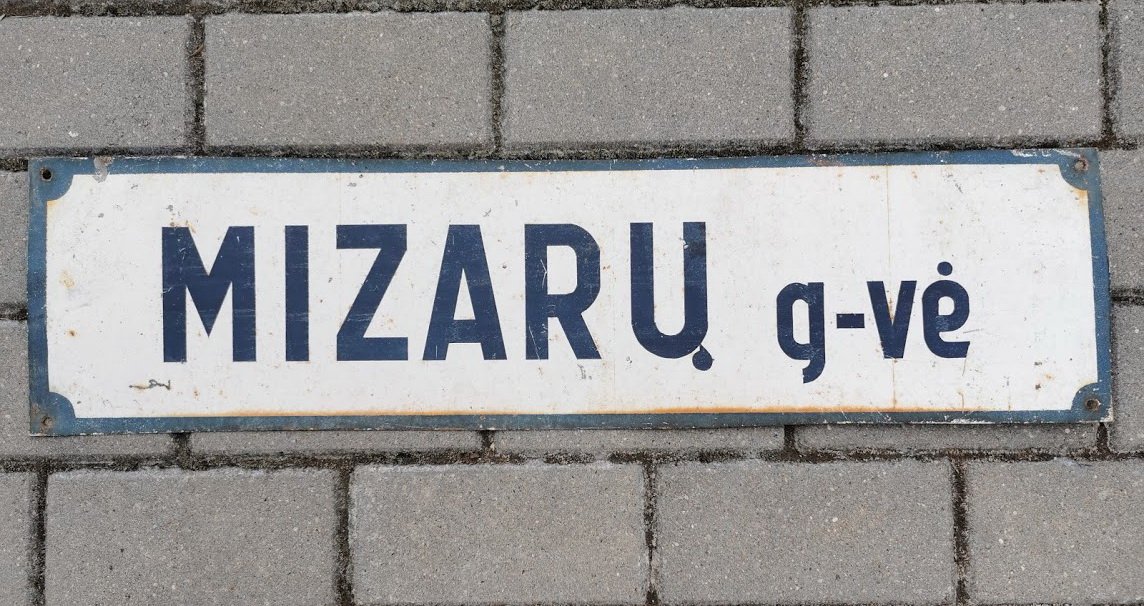 Iškaba, storos skardos, neemaliuota, skardinė tarybinių laikų lentelė, gatvės pavadinimas. MIZARŲ g-vė. Dydis: 18 x 70 cm. Kaina 18