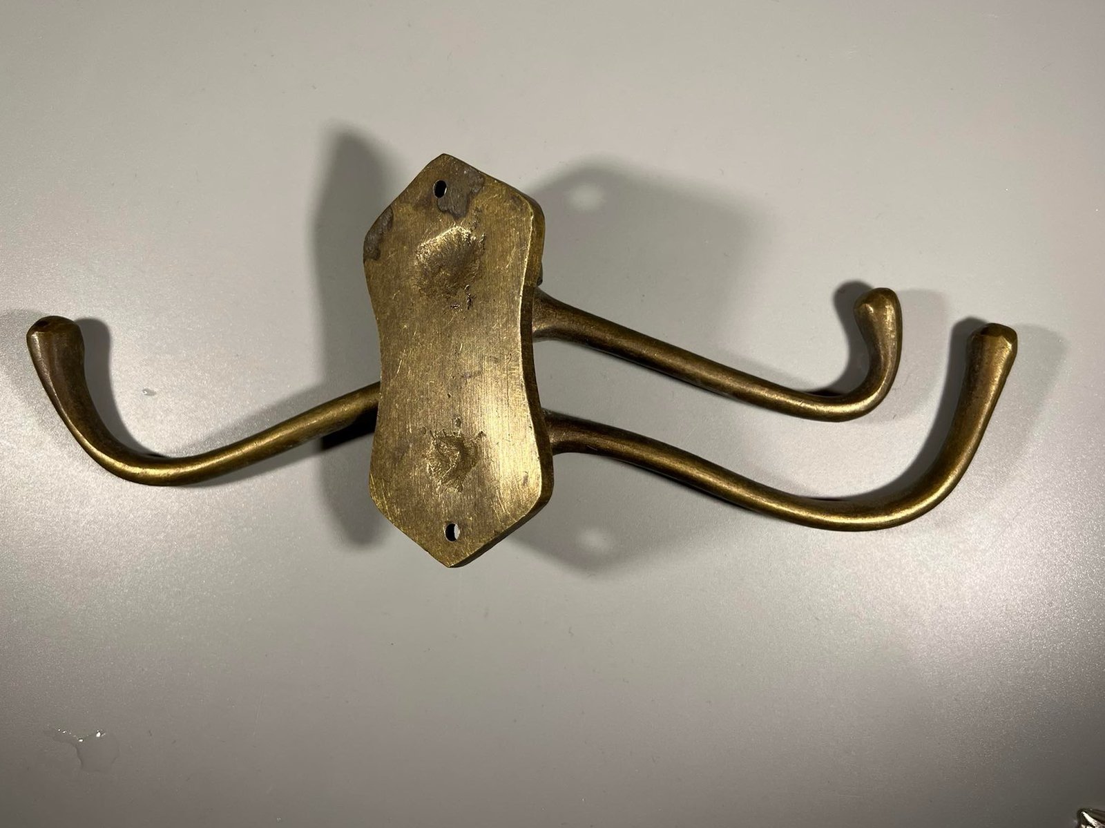 Kabykla bronzinė, 3 šakų, kryptinė. Tvirta. Pagrindo dydis: 4 x 8 cm. Atstumas nuo sienos 14 cm. Kaina 38