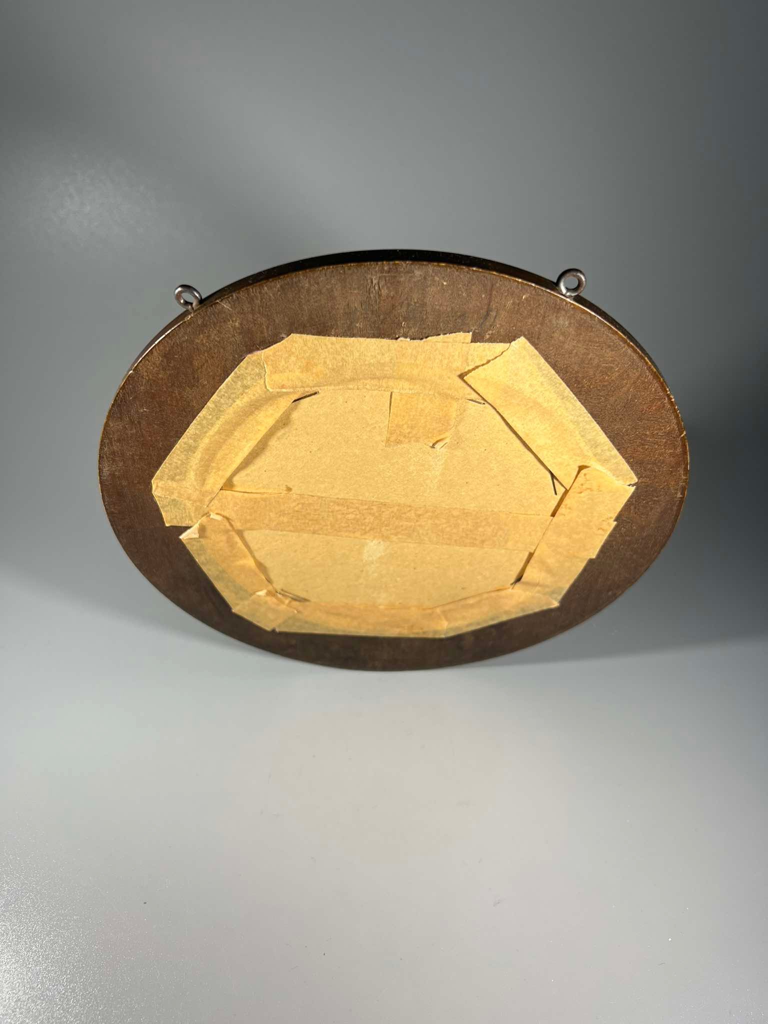 Kabykla drabužių, skrybėlių, antikvarinė, tarpukario laikų, apvalus medinis rėmas su raižyta bei siuvinėta dekoracija. Kaina 48