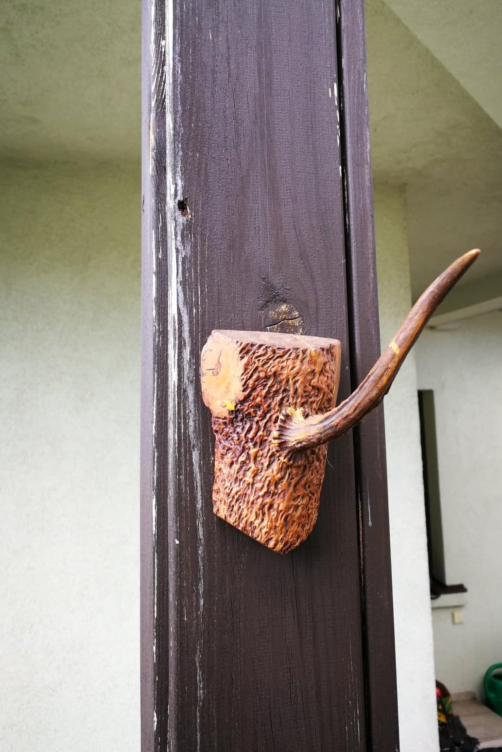 Kabykla Ragas. Tvirtas. Atstumas nuo sienos 21 cm. Medinio pagrindo ilgis 13, plotis 9 cm. Kaina 16