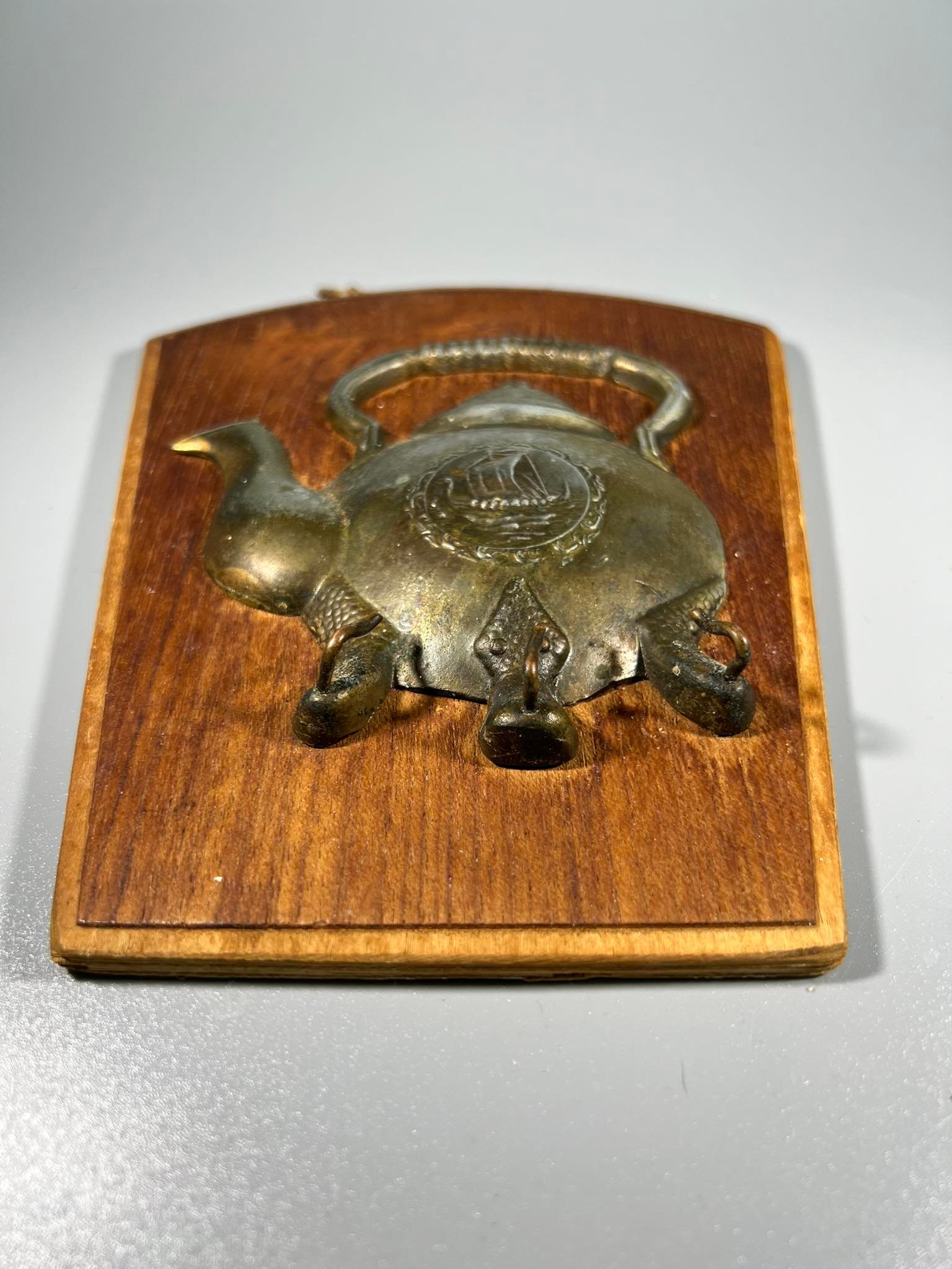 Kabykla trijų kabliukų stilizuotas alavinis arbatinis, arbatinukas. Kabliukai tvirti. Kaina 23